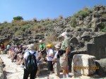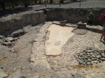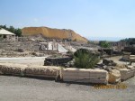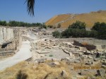 We headed immediately to Beit Shean. This ancient Roman City has the remains, very large remains, of a Roman Theater, and many other ancient city ruins unearthed with so much intact that you can actually visualize a life there. We saw ancient mosaics unearthed at different levels even demonstrating changing tastes in decoration and development of society here. Beit Shean has had a major role in guarding trade routes in this area. The City of Beit Shean is also a “Sister City” to Cleveland, Ohio and so we drove past “Cleveland House” which, with Cleveland Federation’s projects and support from members of Cleveland Temples (as well as other volunteer and donation support I am sure) programs are offered to those in need including education and health and well-being programs. There was little to no shade at Beit Shean, and we did a bit of climbing around the archeological finds. It was unbelievable to see what they have unearthed. Our guide, Amos, climbed down to the intact stage and spoke and his regular voice—we were able to hear clearly. The acoustics were incredible.