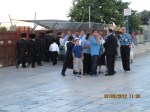 A fitting welcome to Jerusalem was our visit to Mahaneh Yehudah Market! It was a market like you’ve seen in any movie or depiction…absolutely filled with people! It was about 1:00 in the afternoon and it was abuzz with everyone preparing for Shabbat. Stalls and market goers were EVERYWHERE! We were dropped off and walked up the streets to our meeting place: the KIPPA MAN shop! It was the craziest time! My feet got run over repeatedly by little, frail women abruptly pulling their wheeled shopping packs behind them. They moved through the market like determined warriors and whoever got in there way got run over!!!! It was so exciting and exhilarating! But a little frightening as well as not everyone spoke English well. My first quest, for a ladies room, was a great annoyance to the stand-owners I felt! They were there to make quick and multitude of sales not help some lady get to a bathroom!!! But I finally found the “City WC” (Water Closet) and ran into a few others from our group! We decided to have a bite to eat together and then all split up as we were on our quest to bring back something for a small pot-luck snack that we would have on Saturday before Havadalah! There were nuts and fresh Challah and baked goods of all sorts, and fruits and veg. It reminded me a little of West Side Market but with much more mayhem then you could ever imagine! But lo and behold, we all found our way back to the Kippa Man shop and then made our way through the crowds to the bus so that we could come back to our hotel and get ourselves ready for Shabbat. This was very exciting times for me. Just prior to Shabbat starting (at sundown which was going to be about 7:15) we were going to the Kotel or Western Wall. I wanted to go there. I wanted to pray and I thought I had so much to say! It was, for me, a beautiful and cleansing experience. When I found my way to the Wall, everything became clear to me. I just needed to do was express how grateful I was for the love that has shined on me all throughout my life. I have been so warm the entire time here! Who hasn’t?!!! It’s very hot. But, truthfully, I haven’t been miserable…just warm! I touched the Wall. It was, despite appearances, smooth, almost polished feeling. I’m sure it’s from the many millions of hands that have touched this sacred space. It was warm too! But as soon as I touched it and closed my eyes to pray, all my body warmth, the uncomfortable warmth, rippled off of me. I was calm and peaceful and not one bit uncomfortable. And all was clear around me and my little space and I felt very much like I knew what to do, what to say, what to feel. Lo and behold, water was pouring from my eyes. It was much more than crying…or much less than crying; I’m not sure which the better explanation is. I wasn’t sad; I wasn’t releasing anger or hurt or sadness or elation or anything like that. It was more of a letting go that was sort of out of my control. It was a serene time for me. I had the Tefillin with me. I don’t know if they were my father’s or my Grandfathers or even my Uncle’s for that matter. But I am fairly sure they’ve never been to Israel either! The leather prayer boxes bound together with leather, meant to be would up one arm with the boxes on one hand and on the forehead are sacred and warn by most Jewish men to pray. I believe women have started wearing them in some branches of Judaism, but I’ve never seen it done. I held the velvet bag they were stored in and just felt glad that I brought them along. As I backed away from the wall, I stood there breathing and taking in the sight of all those around me. We were on the “women’s side” and I barely looked over to the men’s side as I was surely in my own little world of things. I was asked if I wanted my picture taken…I said yes, but wasn’t ever sure I wanted that! I wasn’t smiling, but I wasn’t sad either…I was just ‘in a place’! After we were done and walking back to the bus I was so happy we had been there. I still am. I want to go back once more before I come home. But I don’t know that I’ll ever have to go again. That sounds weird doesn’t it?! We got back to the hotel and had dinner and our own Shabbat service. With 4 Rabbis and 2 Cantorial students, we were assured of a lovely service!!! It was cool that we all got to light Shabbat candles as we went in to dinner.