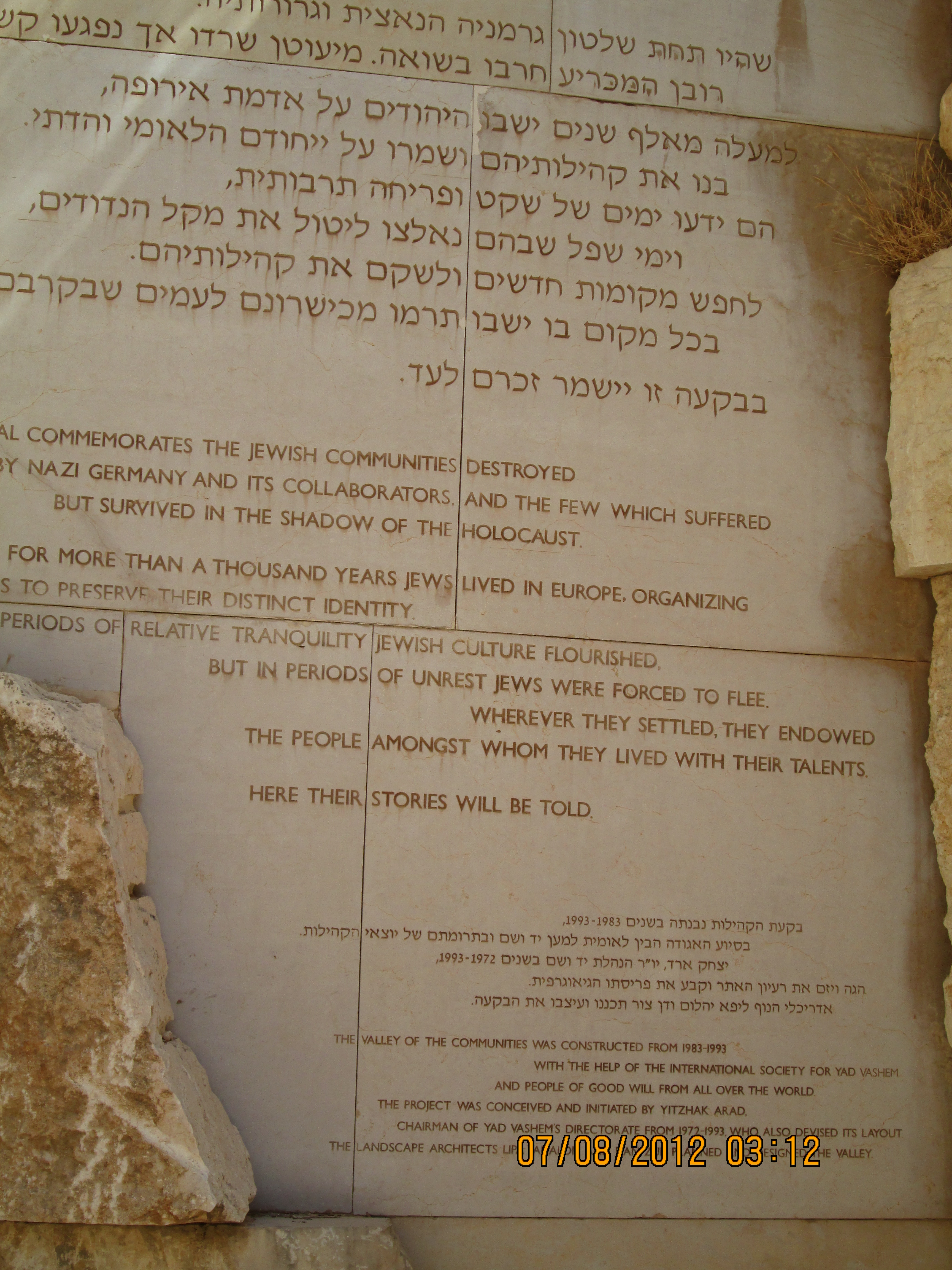 Sunday, July 8, 2012 Yad Vashem and Israel Museum