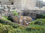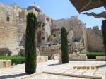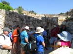 We have been learning about the recent discoveries of King Hezekiah’s tunnels; a long and intricate system of obtaining water to the King in case of attack and our tour included admission to a tour through the tunnels. When we found out that there is still water in the dark and narrow tunnels and in a couple spots it could be thigh-high, several of us had 2nd, 3rd and 4th thoughts about our need to make that 45 minute trek in the dark and wet tunnel! Our Guide, Amos, who is handling our tired and cranky moods quite handsomely, told us that beside the wet tunnel is a set of shorter, dry tunnels that would only take 10 minutes or so to go through! 6 of us opted for that! A few opted out completely and the rest trekked through the entire 45 minute Hezekiah tunnel tour! But what I didn’t know beforehand, was we both would share this downward decent to get to either of the tunnels. It was so scary and at spots I was shaking from head to toe…so much so that when we finished the climb down, I was in tears. No one who knows me would have expected me to do that once they saw it. I was brave, but shaking all over when we got down there. BUT I DID IT!!!!! It made the 10-minute dry tunnel excursion seem much easier by far! I took a pic or two by looking back of where we climbed down from…..hope they show up well too!