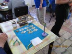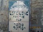 We had a very busy day; with a late check-out because our flight wasn’t until after 11pm. So we got up and had to be on the bus by 8:45 so we could go to Yad LeKashish – Lifeline for the Old.http://www.lifeline.org.il/ This was really really cool! I think I’ve probably said that about everything we’ve done, but this really was!!!! It’s a non-profit organization that helps Israel’s “most needy” by giving them something to do that matters; whether they have a particular skill or not. As I gathered from it, it is operated primarily through volunteers and extremely visionary and talented artists create projects that require several steps and multiple types of skill sets for completions. They paint on pure silk and make Tallit (prayer shawls), the do paper mache’ molds of various Israeli items of interest, and then when dried they plaster over them and paint and cure them and they are gorgeous! They embroider and knit and have a metal working shop that makes menorahs and tzedakah (charity) savings boxes with beautiful designs. Those who can’t paint or color or sew or knit, can wash or process or iron on patters for the painting, or various other things. Full team work projects with no quota, etc. Just a chance to be useful and interact with others. In exchange, they receive additional stipend money each month and free monthly bus pass as well as a meal and 2 snacks each work day; they get dental care paid for which is not normally covered on welfare alone; they receive additional support during and for special days and holidays, etc. It is fully supported by the purchase of the items from there and donations. It started out with one project…a bookbinding project and has grown and grown and grown. It was really inspirational to see what it accomplished. I had a particularly neat experience there. There was this teenie little lady, I believe she was a Russian immigrant to Israel, and she was sewing beautiful gold thread onto deep maroon fabric in lovely design. She couldn’t speak to us but her perky smile showed how excited she was that we were interested in what she was doing. Two of the ladies on our trip took pics of her and she was tickled, you could just see it….then she motioned to me, pointing at me and then at herself. I thought she wanted me to take a picture of her too so I started to get my camera out; instead she grabbed me and put the sewing project that she had previously held up in my hands and sat me down in her chair at the sewing machine so they could take a photo of me…and she backed away!!! I said no and made her come stand beside me (we were almost the same height…her standing and me sitting!) and they snapped pics of the two of us. She was so tickled afterward she hugged me; and I hugged her and gave her a kiss on the cheek and she did the same to me!!!! I’m sure you’ve figured by now that you’ll be able to come to my house to see the maroon mezuzah hanging on my door post that is identical to the ones she was posting!!! I sort of HAD to have it after that, don’t ya think???!!!