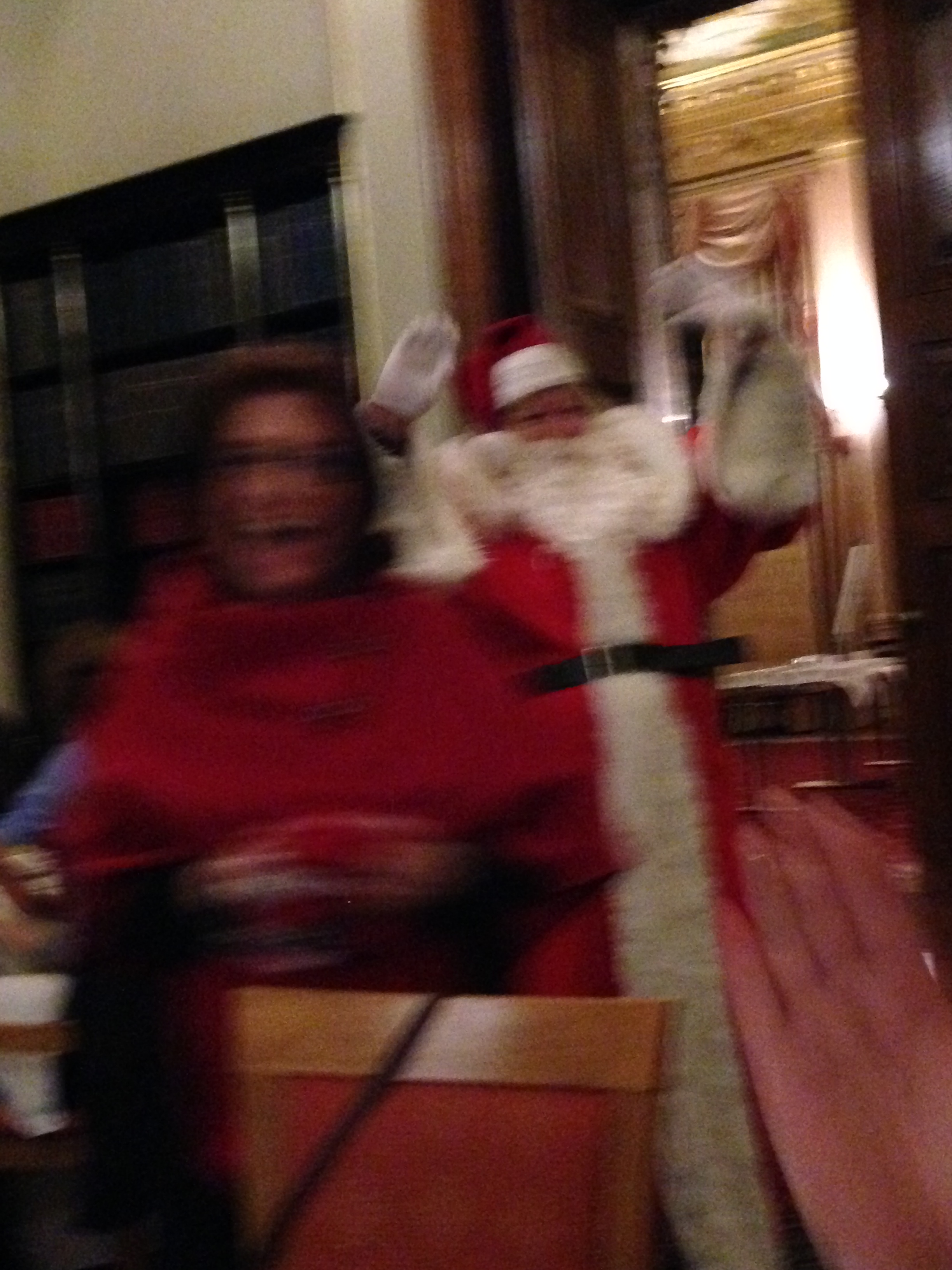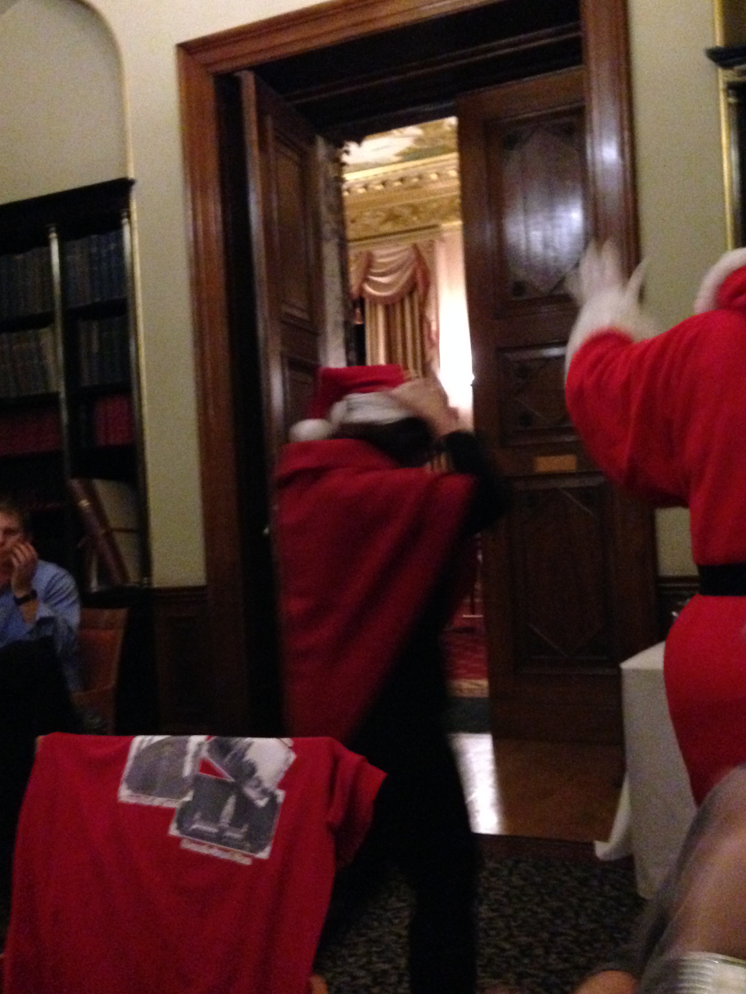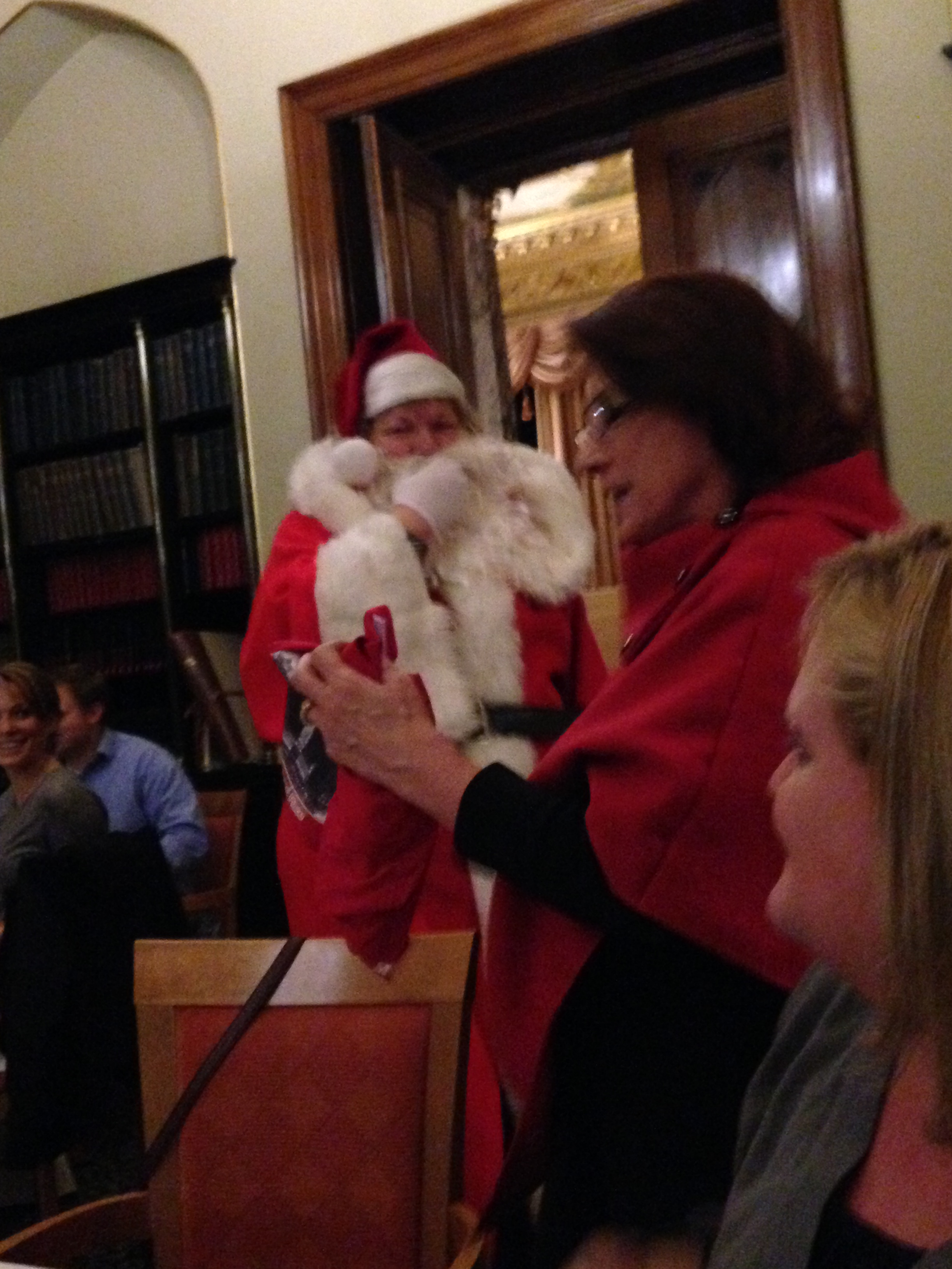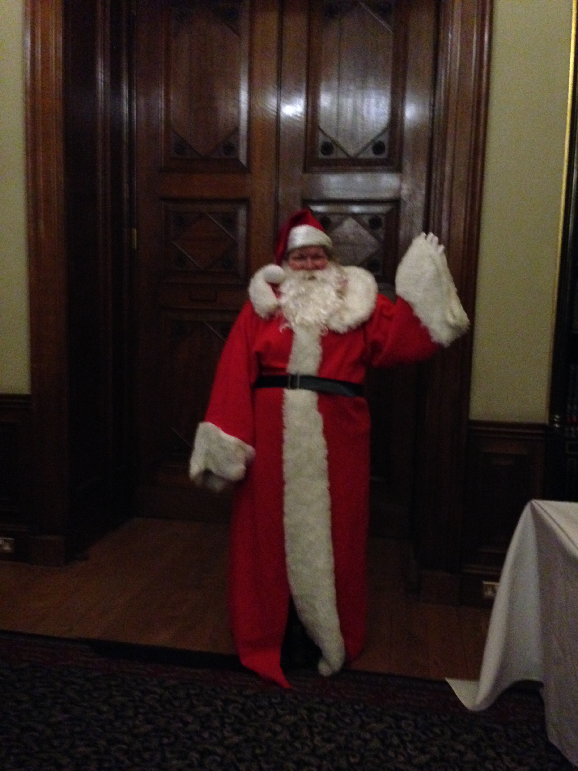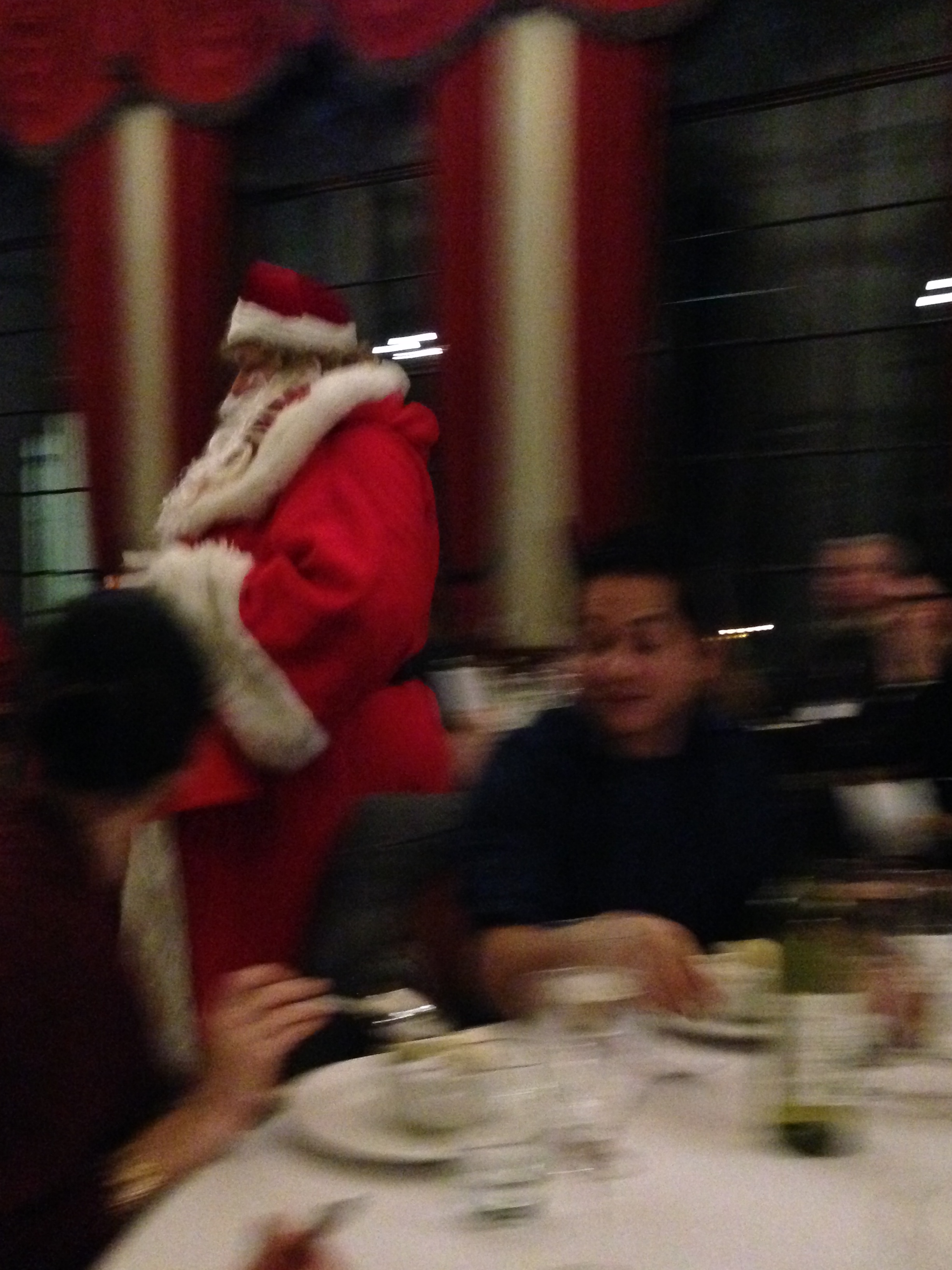 Pat had arranged for gifts for each student, a t-shirt she designed with pics from the two schools and of course the Grand Place’ in Brussels on it and their MPOD 9 cohort designation. I played Father Christmas from a loaned costume from Ashridge Faculty! It was a lot of fun; then back to the room for the final packing. I started the photo upload and then went right to bed. Now, at 3am I’m up, inserting the photos into this post and finishing off the text! Then I’m back to bed for the remainder of my sleep. We hope to get up in the morning and attend the weekly service in the chapel before our ride to Euston Station on our adventure to Vienna. I hope all goes smoothly as I purchased all the tickets for this leisure leg of the trip. I think I did it right!!!! G’night!