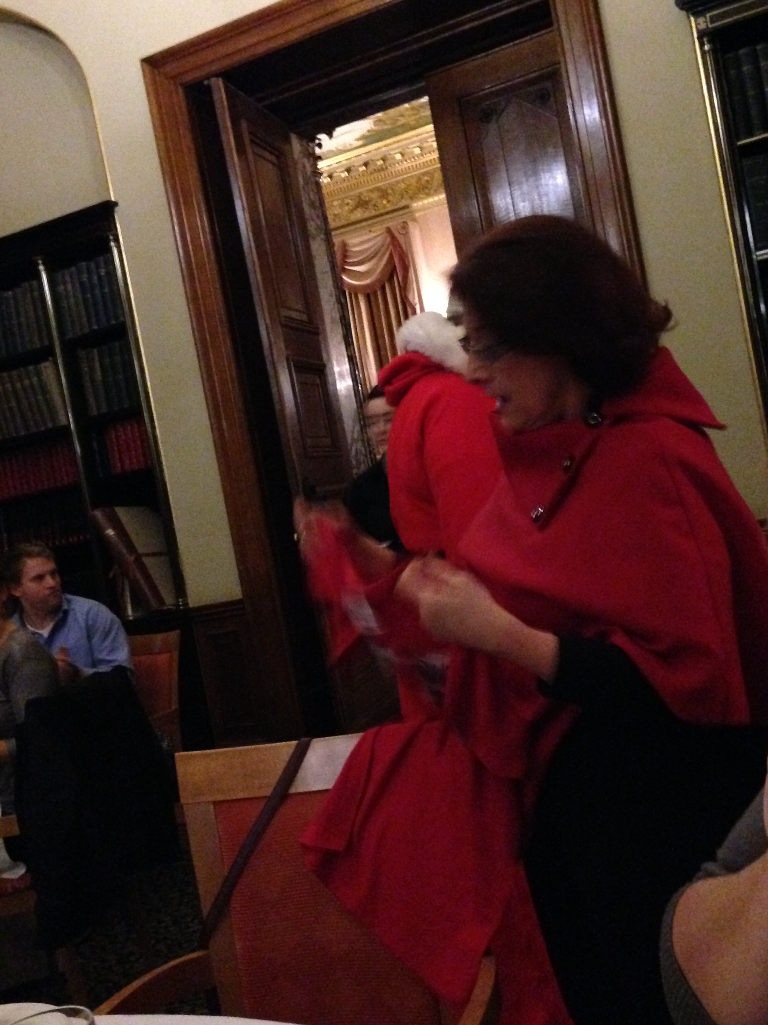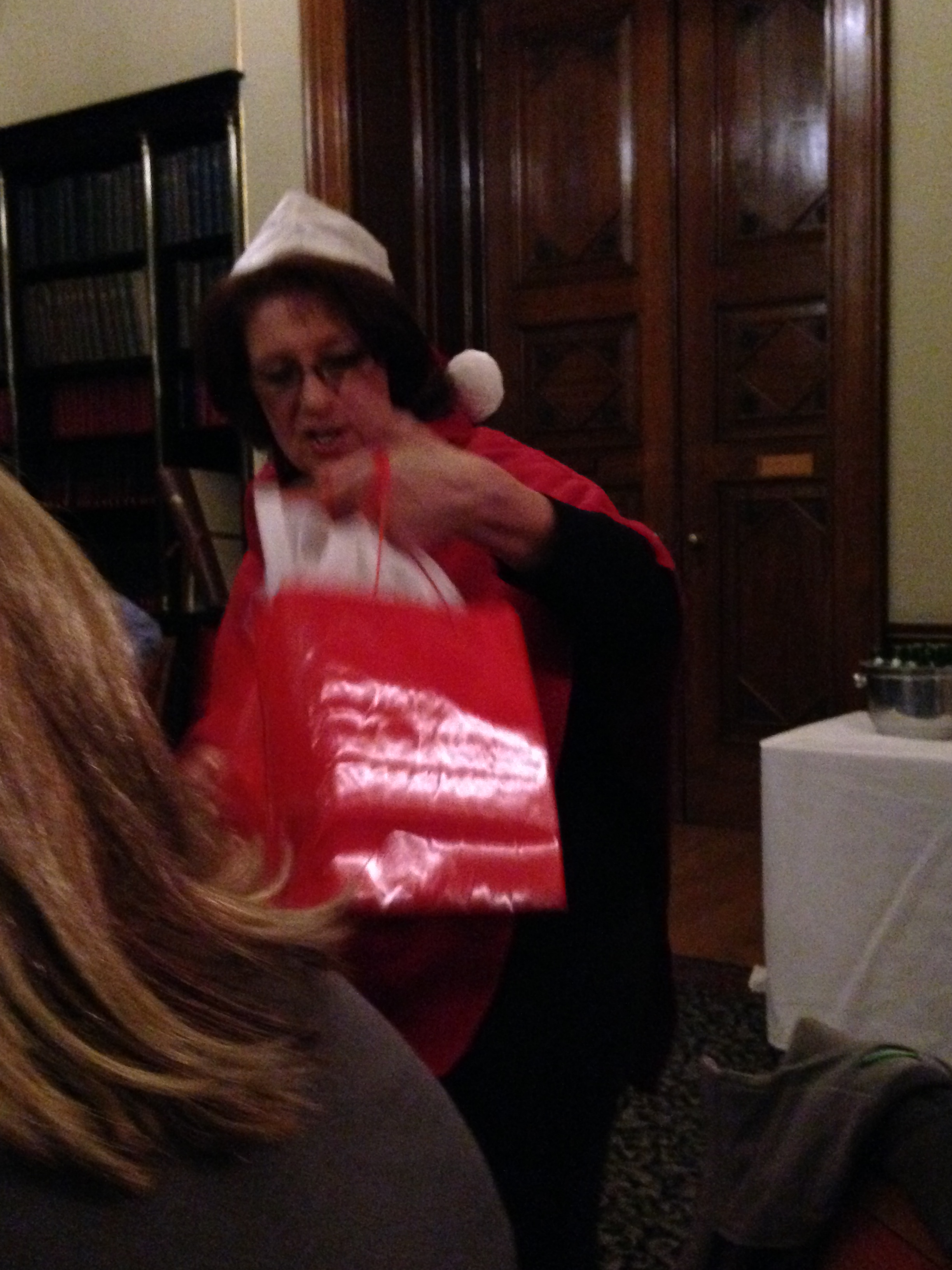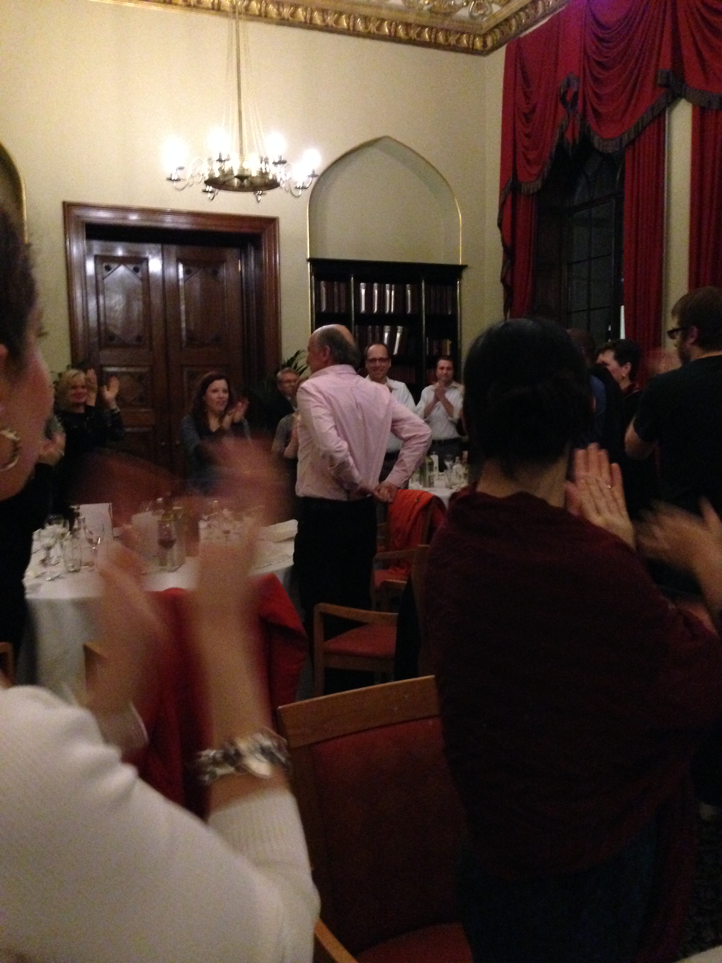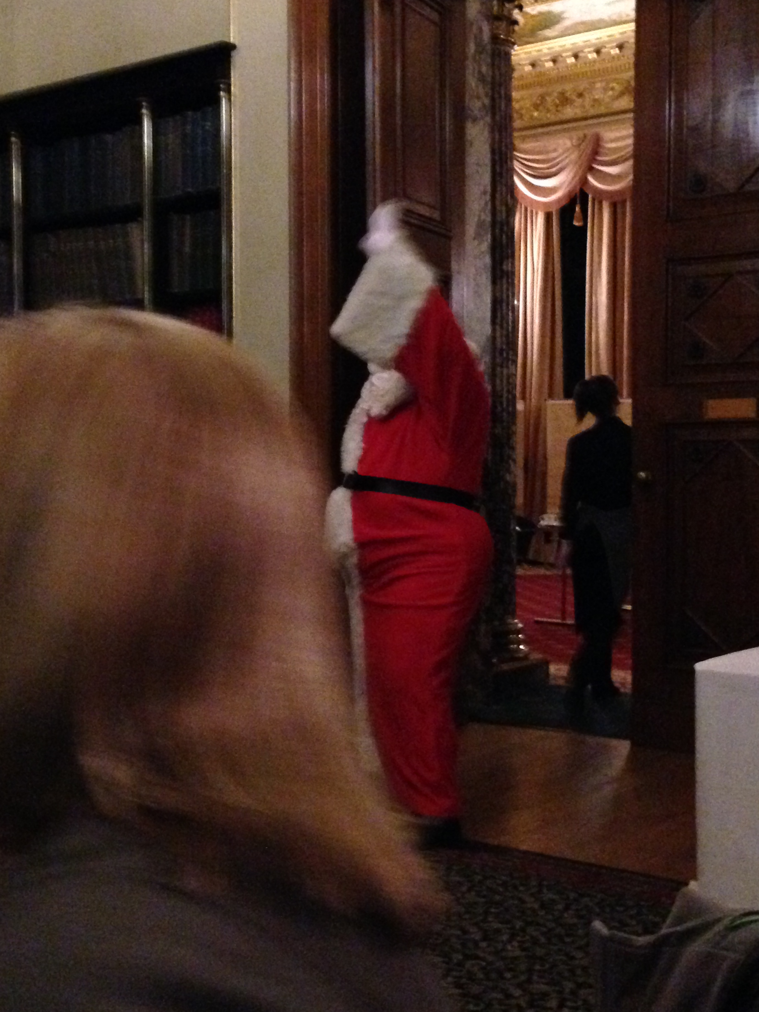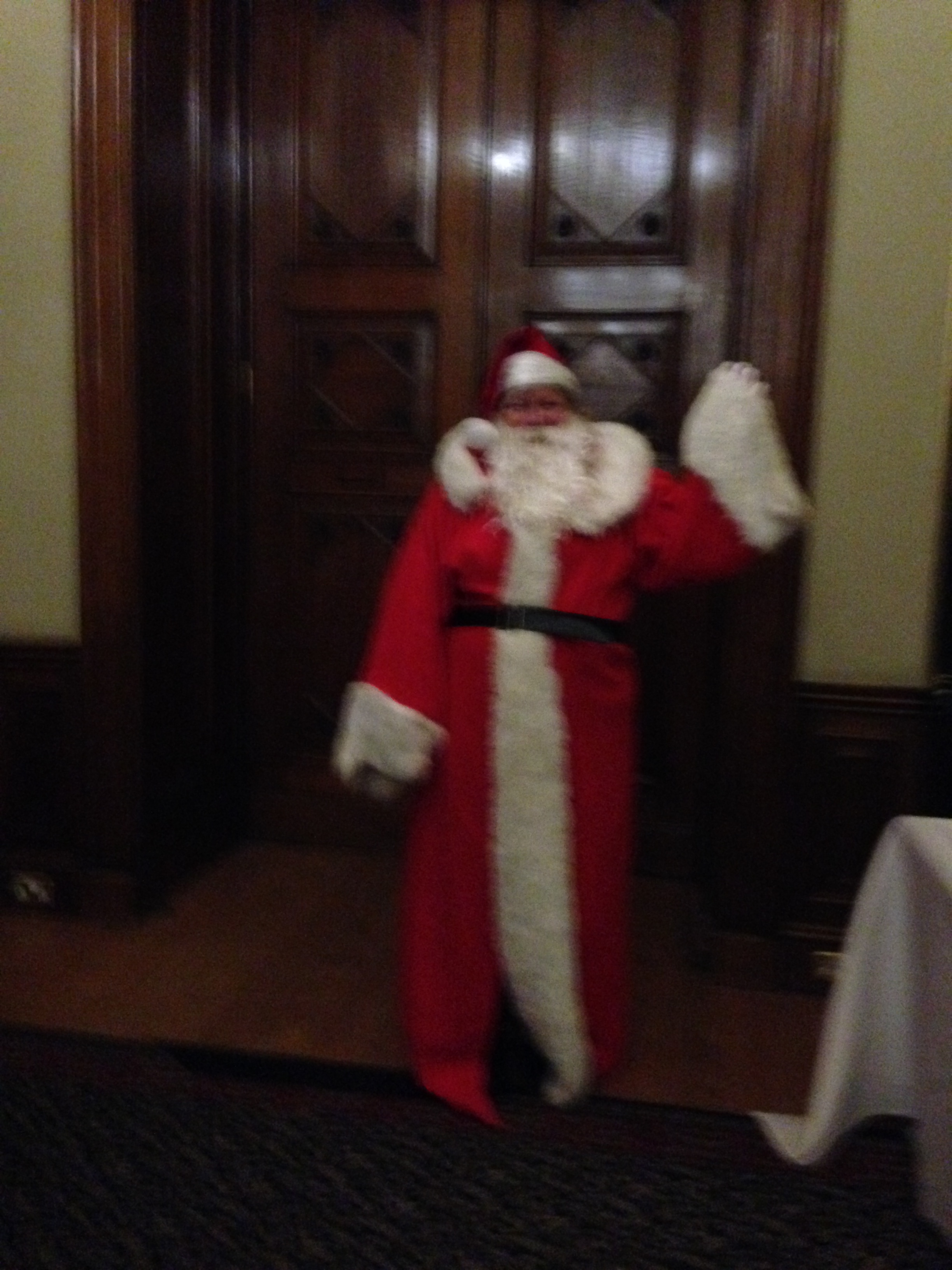 Pat had arranged for gifts for each student, a t-shirt she designed with pics from the two schools and of course the Grand Place’ in Brussels on it and their MPOD 9 cohort designation. I played Father Christmas from a loaned costume from Ashridge Faculty! It was a lot of fun; then back to the room for the final packing. I started the photo upload and then went right to bed. Now, at 3am I’m up, inserting the photos into this post and finishing off the text! Then I’m back to bed for the remainder of my sleep. We hope to get up in the morning and attend the weekly service in the chapel before our ride to Euston Station on our adventure to Vienna. I hope all goes smoothly as I purchased all the tickets for this leisure leg of the trip. I think I did it right!!!! G’night!