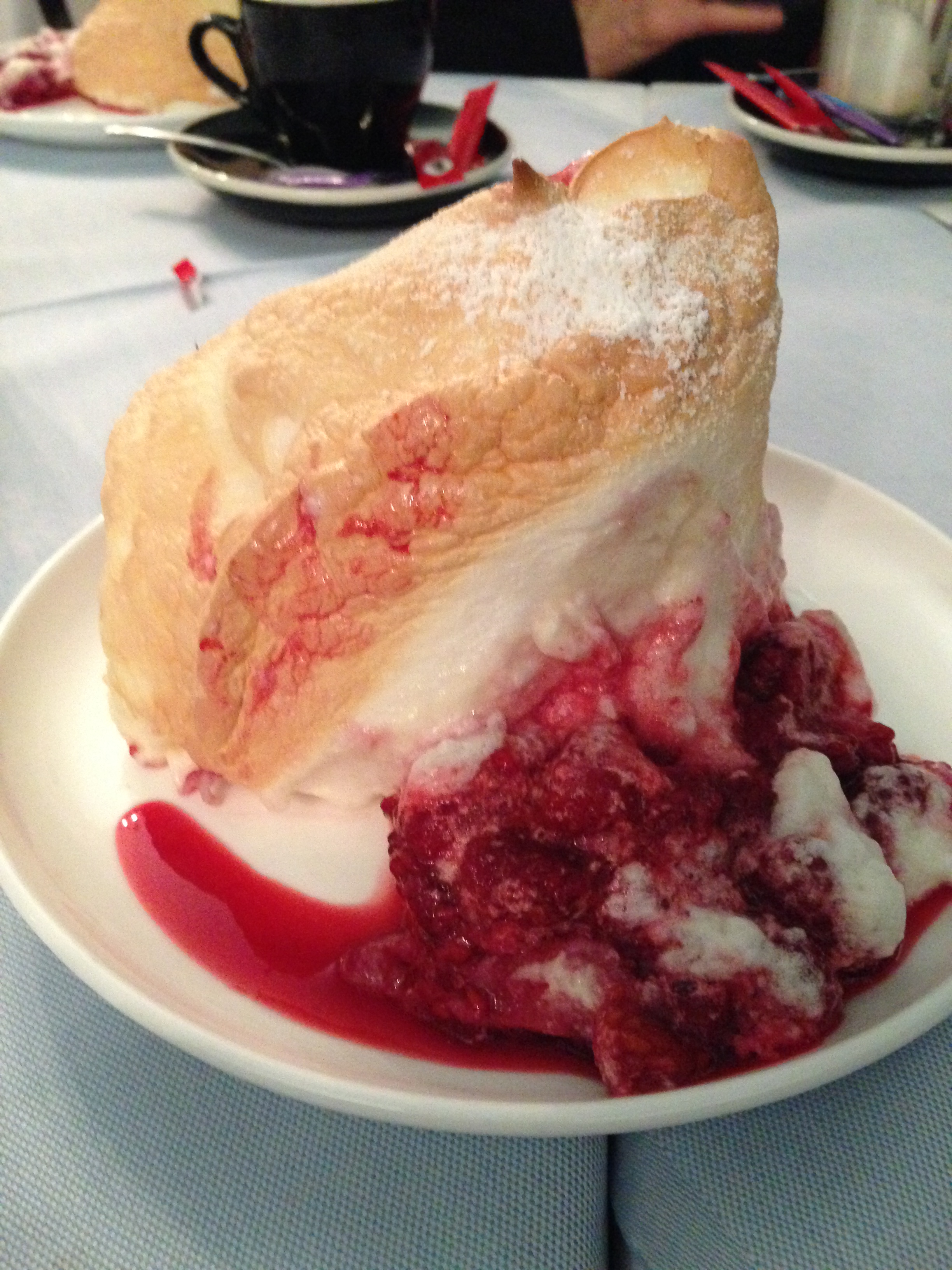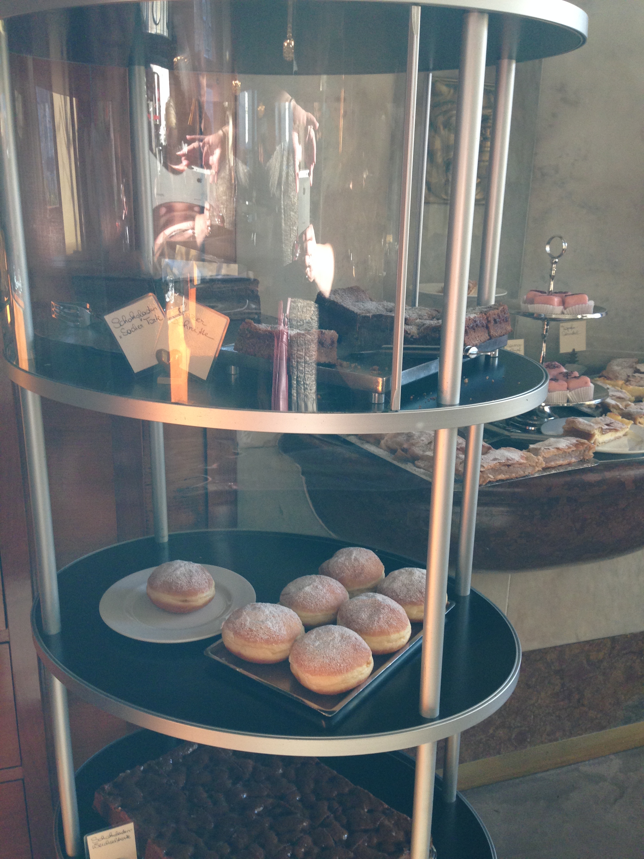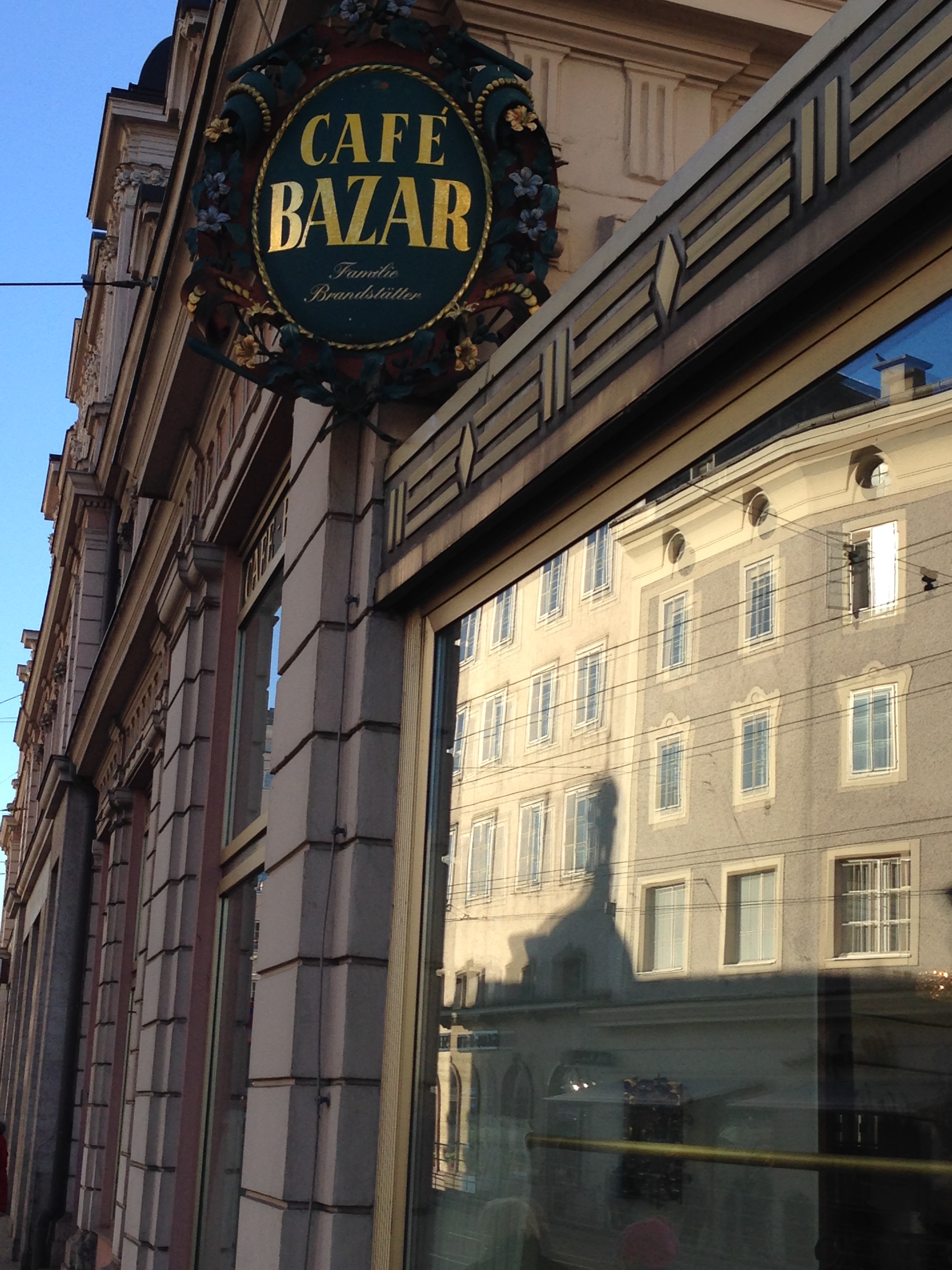 We found and rode the “hop on hop off” tour and did a complete “round” before we hopped off and did our own little walking tour. We had lunch at the Cafe Bazar which they informed us was the most famous place to go and where artists and famous people also go! It was great fun. We did not over eat because we wanted to save room to find this special dessert Salzburger Nockerl which was referred to on the train. It’s sort of like meringues with raspberries underneath but not totally like that! It’s sweet and rich and we split one 3 ways as the peaks are about 5 inches high and probably 3-1/2 inches wide and it came as 3 peaks! We found a place that served it later in the day and had coffee while we waited for it and then shared it all 3 of us! It takes about a half hour to make and, like a souffle’, not everyone can make them!