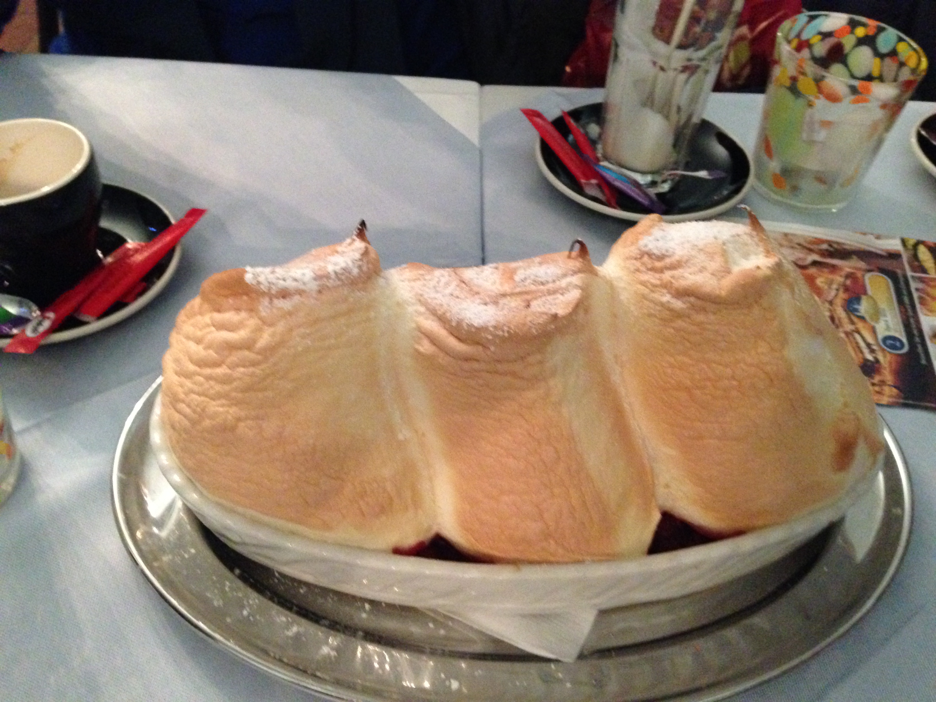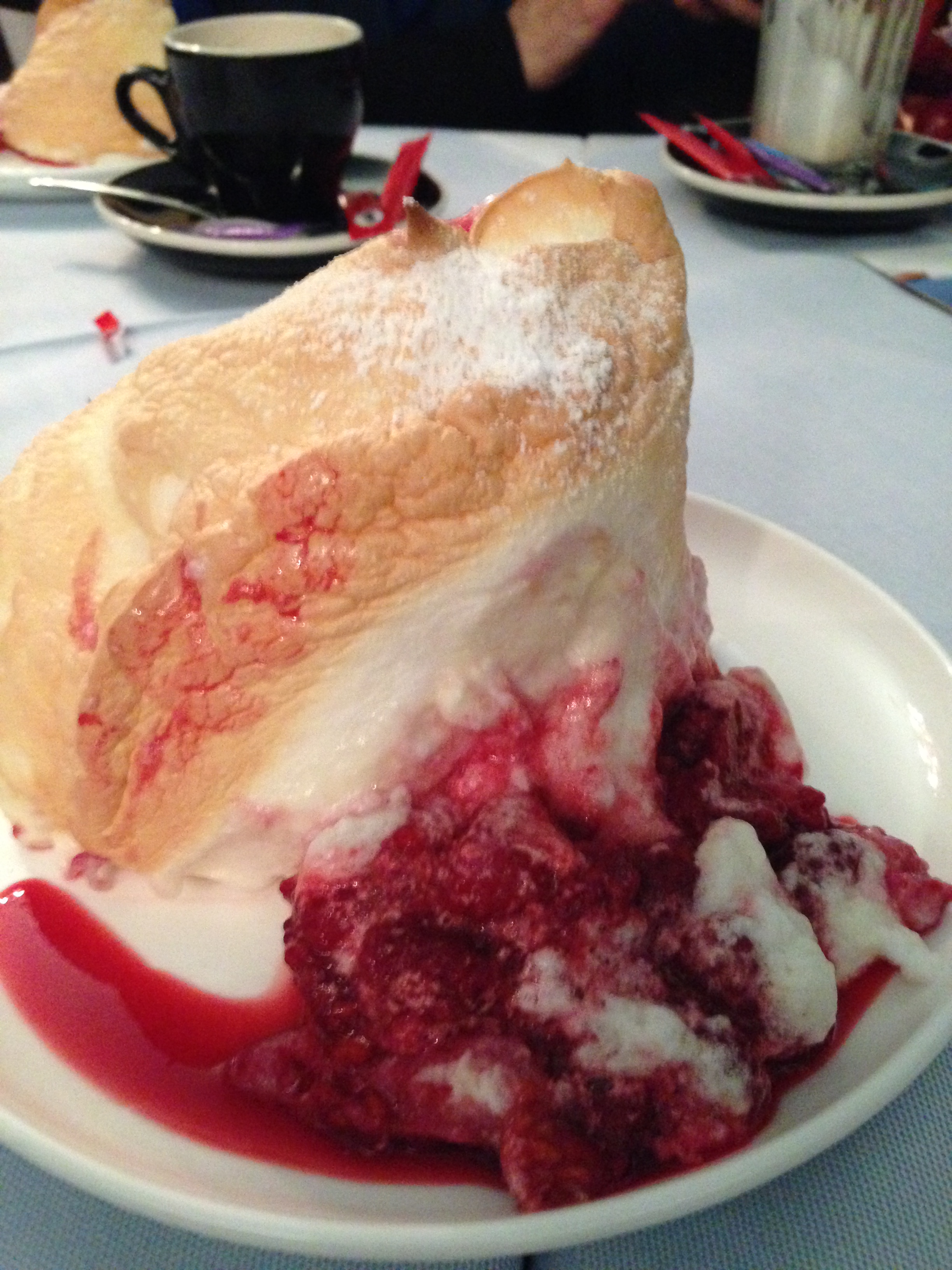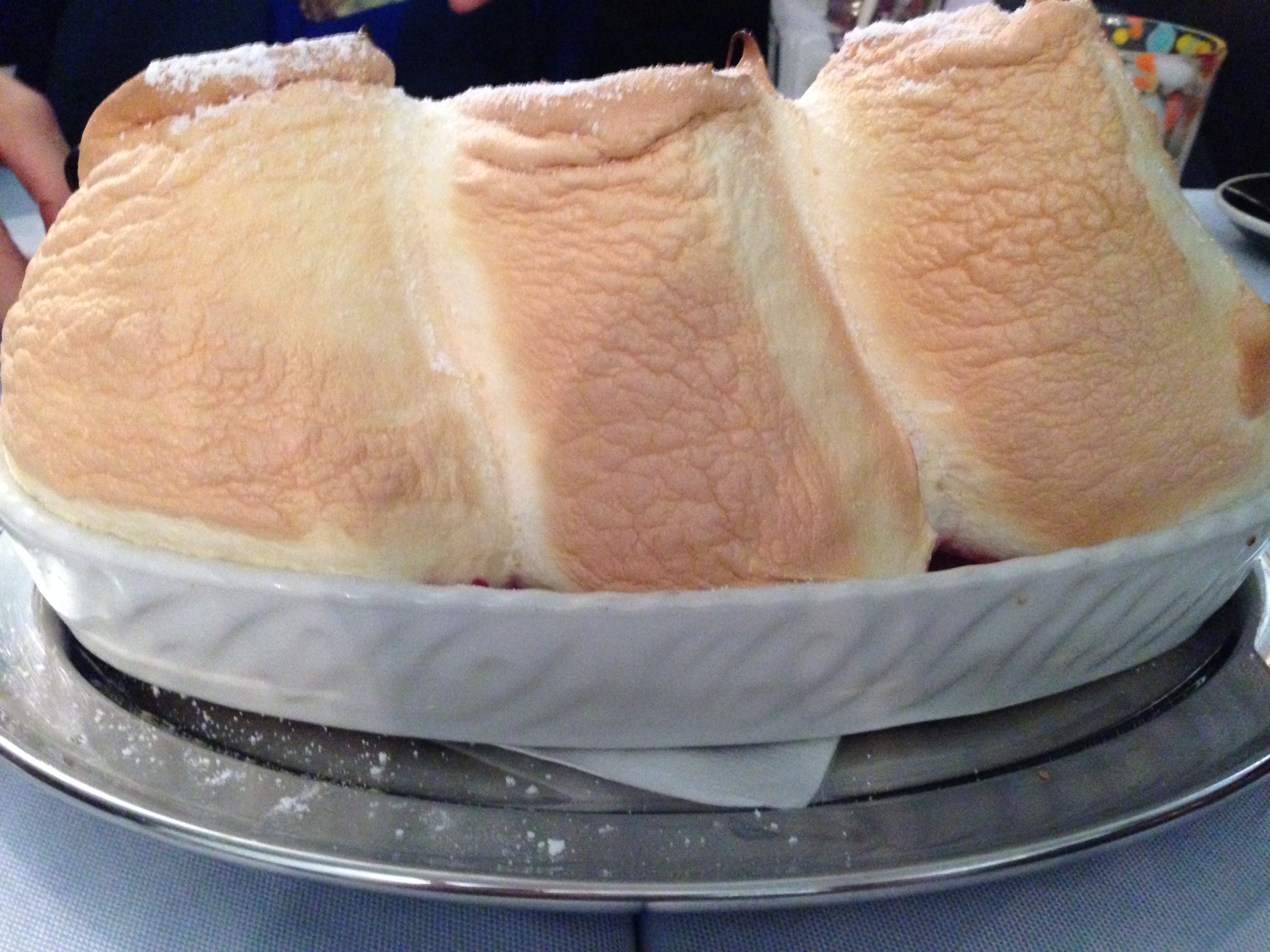 We found and rode the “hop on hop off” tour and did a complete “round” before we hopped off and did our own little walking tour. We had lunch at the Cafe Bazar which they informed us was the most famous place to go and where artists and famous people also go! It was great fun. We did not over eat because we wanted to save room to find this special dessert Salzburger Nockerl which was referred to on the train. It’s sort of like meringues with raspberries underneath but not totally like that! It’s sweet and rich and we split one 3 ways as the peaks are about 5 inches high and probably 3-1/2 inches wide and it came as 3 peaks! We found a place that served it later in the day and had coffee while we waited for it and then shared it all 3 of us! It takes about a half hour to make and, like a souffle’, not everyone can make them!