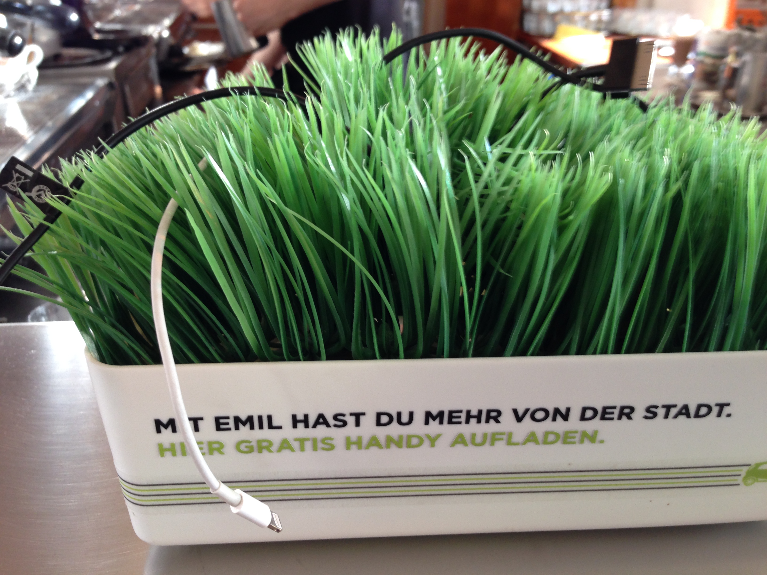 a phone recharger on the bar at the restaurant: