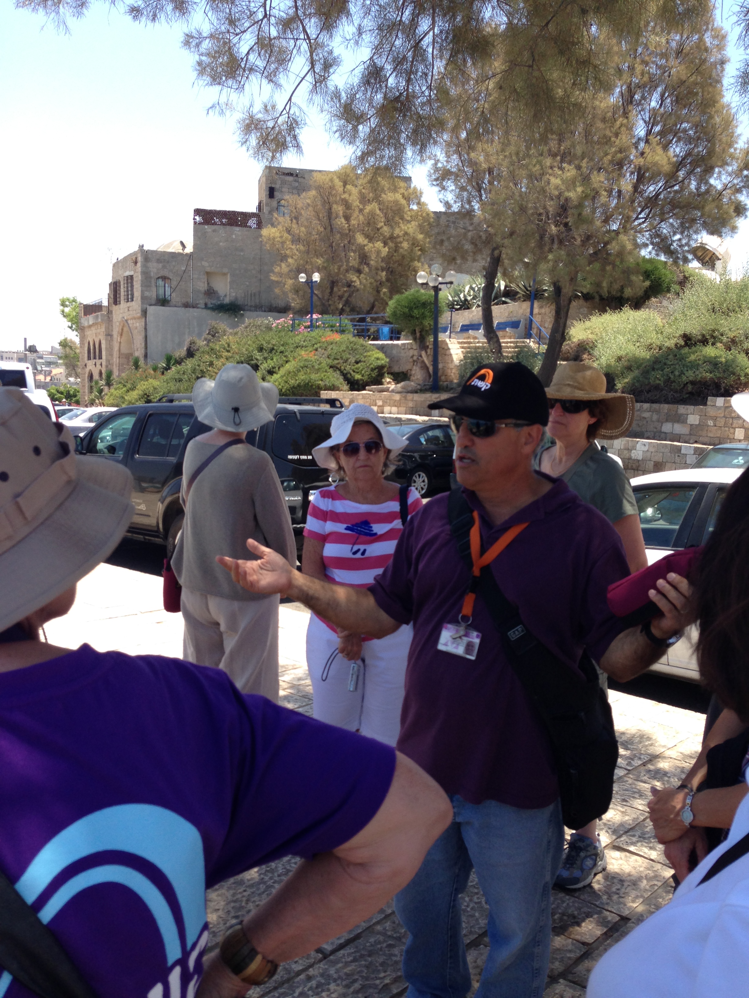 We went to Jaffa; originally a walled (gated) city. We had a great time walking all throughout Jaffa and listening to Amos explain to us where the walls were placed and then we got to see the main park after a hilly good walk (it rises over 40 meters). We saw some luscious views of the Mediterranean Sea (I’m ticked that my pictures aren’t uploading in order as I’ve named them in such a way that they should–hope to figure that out in the future) The views rival the best of any cruise water views I’ve seen and loved. We started by Clock Square, walked past two Mosques. It’s Ramadan now so there was peaceful prayer going on. We went past St. Peter’s Monastery and the Catholic Church on our uphill rise. There is an ongoing archaeological dig…a continuation of earlier digs which has uncovered some amazing history, assuring that it’s over 7000 years of inhabitance! It’s wild when you think about it. Jaffa had very run-down areas which was eventually reinvested in and is now a really neat artist colony resembling that of Safed (Zfaat). We climbed up and down and around throughout and then went on our own for lunch. I went off by myself in desperate search of Air Conditioning! I couldn’t have cared less what I ate…I wanted to cool off. Israel’s in the middle of a high heat time and well, WOW, it is really hot!!! And we were there at the height of the hot day which exacerbated the effects! We shuffled to shade whenever we stopped to speak with our guide. Here’s a link to a little more on Jaffa! http://en.wikipedia.org/wiki/Jaffa