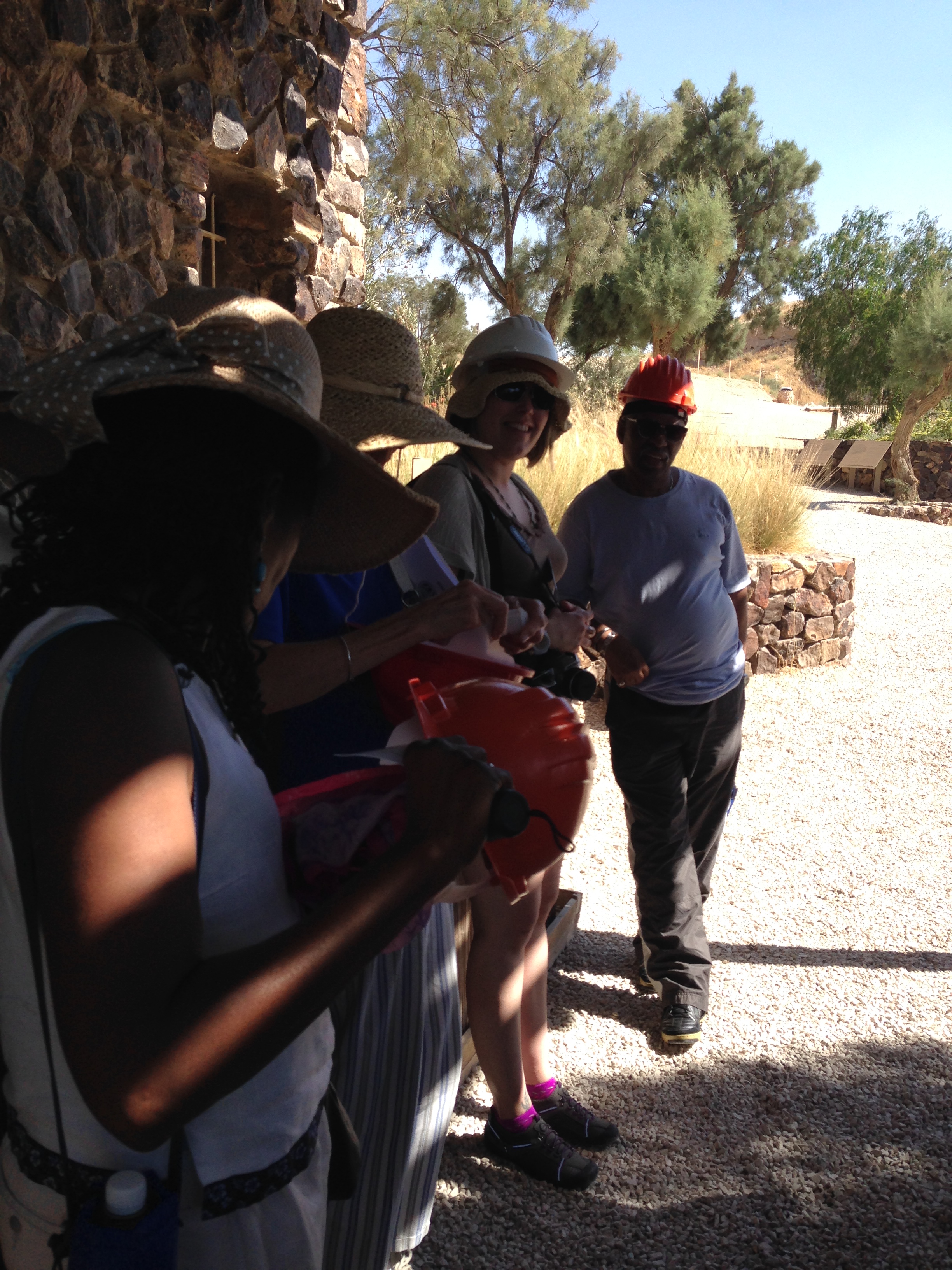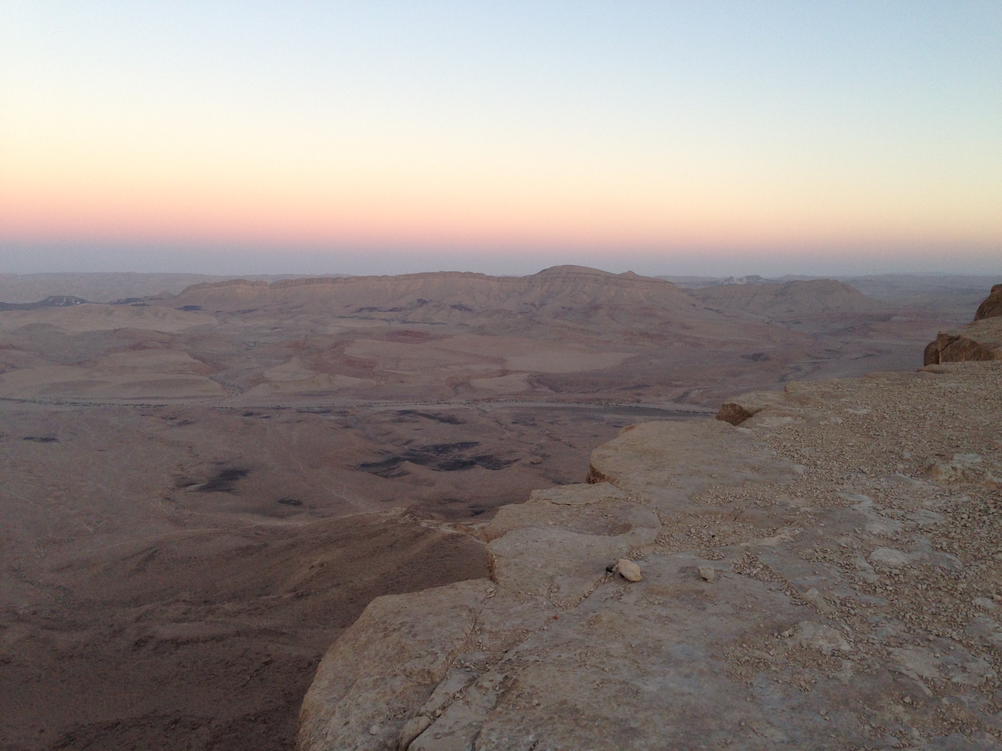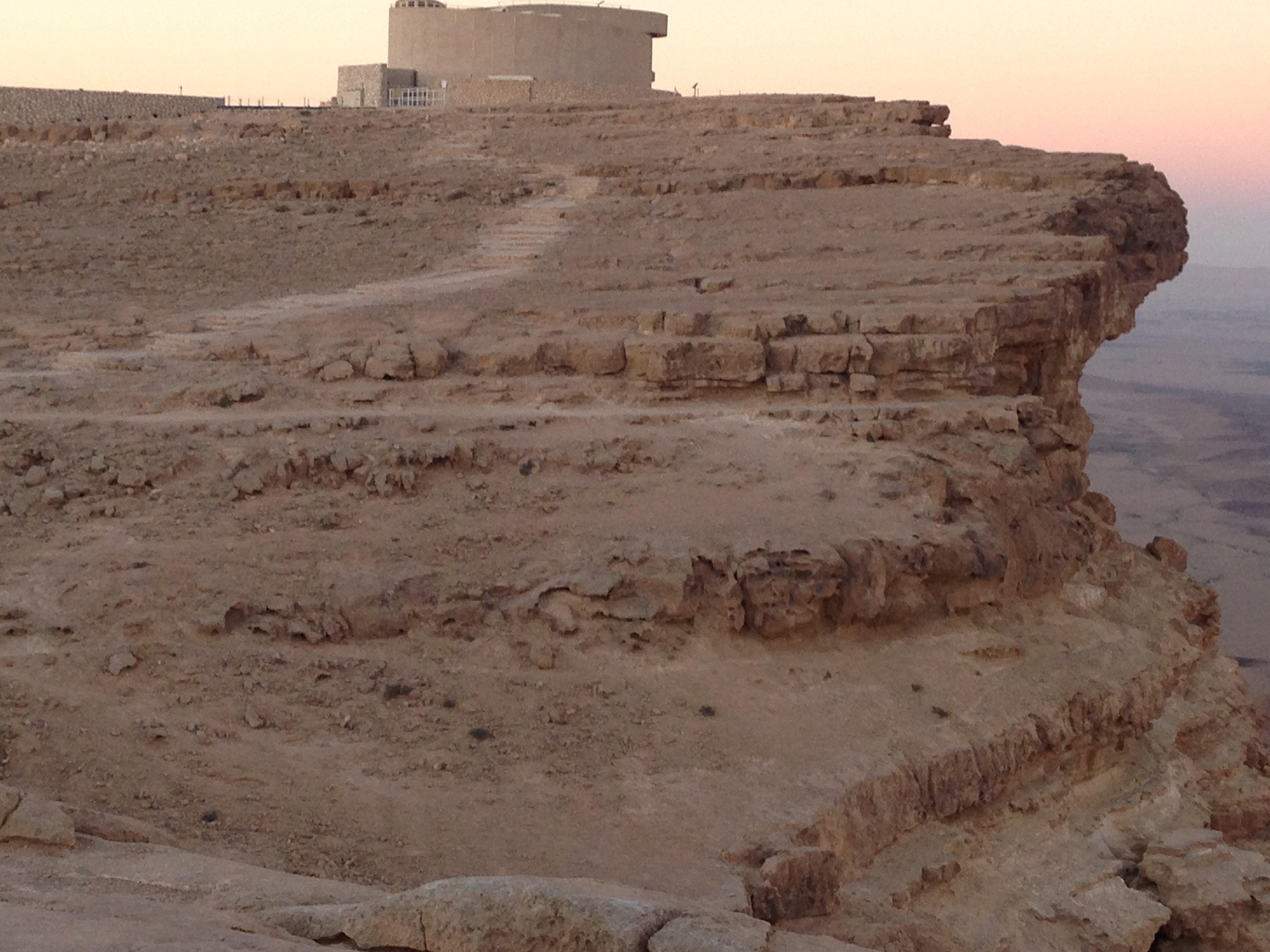 Everyone was ready to get to our Ramon Inn hotel! A 6 floor hotel with no elevator! I was actually relieved to have a 2nd floor room! They did offer to help us with our bags to our rooms; I took my first one myself figuring I only had to go up one floor…WRONG. I guess reception area is Ground Zero!!!! We were only to take about 15 minutes in our rooms and come back down to the lobby to go for our walk to the Ramon Crater. Makhtesh Ramon. It’s not really a crater but a geological phenomenon. I’ll include a link to discuss all about how it comes to be, but what is amazing about is beyond how deep it is, is the many colors and types of sand, dirt, etc. that comprises this huge, deep, rut. Right next door is a geological museum and research center…no surprise there! We got to see it at sun down. My pictures below don’t seem to capture the enormity of it nor the beauty of seeing it at sunset. In readying myself for writing my SACRED SPACES paper(s) for my Independent Study college credits, I can’t omit the specialness of natural phenomenon in this holiest of lands as their own sort of sacred space. Especially when you get to observe everyone’s reactions to these visits we’re having. One can’t help but believe in miracles and wonder. The Ramon crater area doesn’t look like anything could live there, yet, while we were overlooking, we saw 3 goat-like animals (small, medium and large!) that Amos identified as Ibex. That’s another amazing thing. 2 years ago when I was here and went to Masada, there is absolutely no visible means of survival, yet there are these black birds who definitely reside there aplenty. And these animals surviving here. It defies explanation. Here’s a little link! http://en.wikipedia.org/wiki/Makhtesh_Ramon