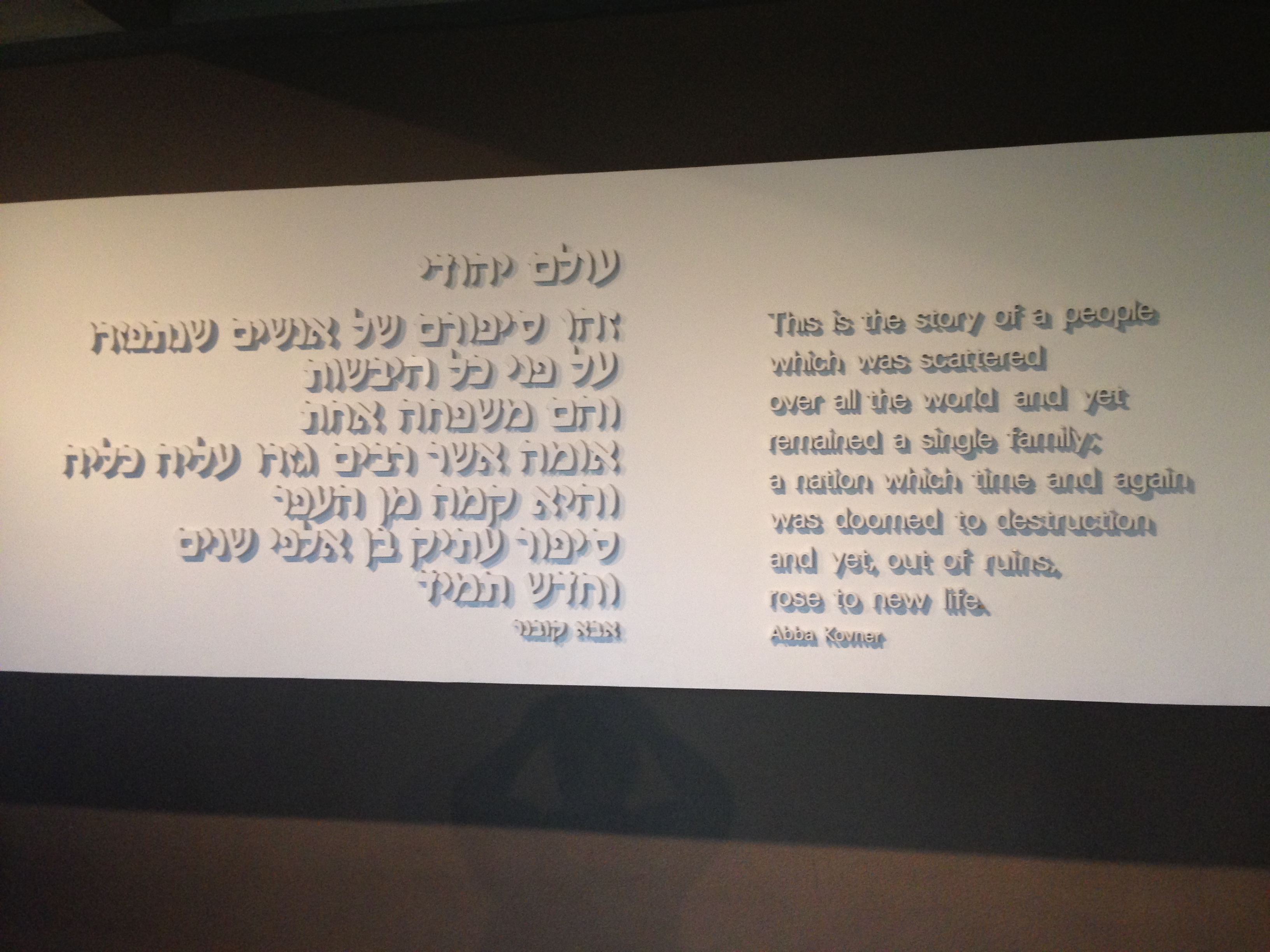 We went to the Diaspora Museum at Tel Aviv University. Tel Aviv University is a really lovely place and the Diaspora Museum follows the movement of the Jewish People and collects the data and tracks the information. It’s a small museum as museums go, but it is filled with tons of pertinent exhibits and information aiding in the understanding of the different cultures and changes in the the whereabouts of the Jewish People. It is also called Beit Hatfutsot, Museum of the Jewish People. We had a lovely lady guide who gave us the quickie tour. I wandered off while she talked or wouldn’t have been able to see some of the stuff I wanted to see and photograph! I even saw a replica model of a synagogue in Elkins Park Pennsylvania designed by Frank Lloyd Wright; and a model of the oldest surviving synagogue in Amsterdam, Holland which I did see from my hop on hop off tour there a could years ago! It was interesting to hear the guide explain particulars about the Jewish people and hour COMMUNITY is at the helm of who we are as a people to our mainly non-Jewish tour group. And it never hurts me to hear and be reminded of that! It was actually cooler outside with the nice sea breeze than in the museum, but we weren’t in there for too long! I knew it was going to be a bit warm because they had a HUGE fan on facing the registration desk! http://www.bh.org.il/