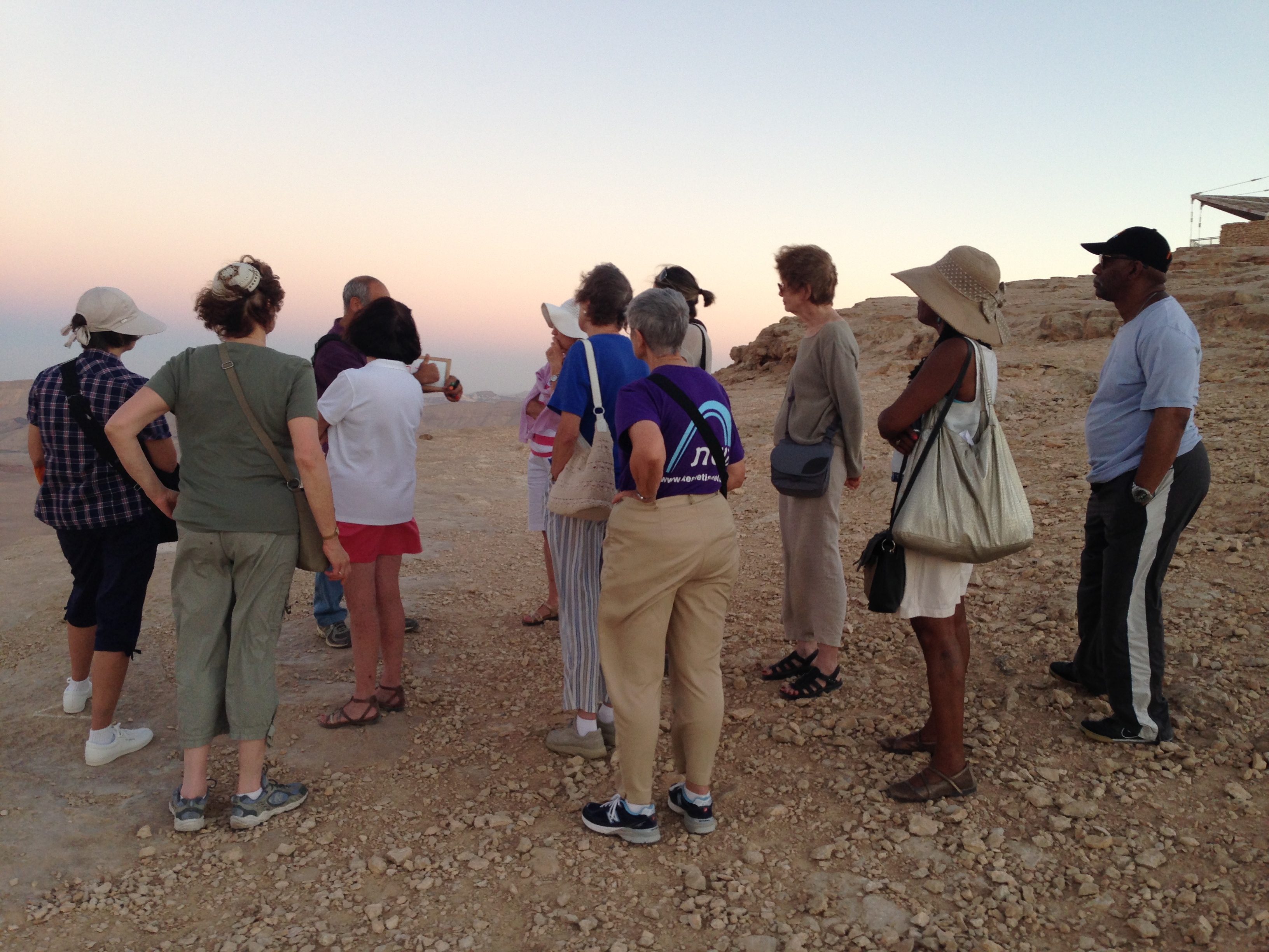 Amos was giving us tidbits of information on the ride there, but many of our group fell asleep. Not at all out of disinterest, but because we’re still getting acclimated to the time change and loss of sleep from the plane ride! We all roused awake to view the herds of camels resting along both sides of the road! I’m not entirely sure if groups of camels are called herds or not! The other thing we saw a lot of was sheep! And, of course, in Israel, it sure looks biblical! And we were also amazed to see Shepherds too! Maybe we’re easily amazed! Who cares?!