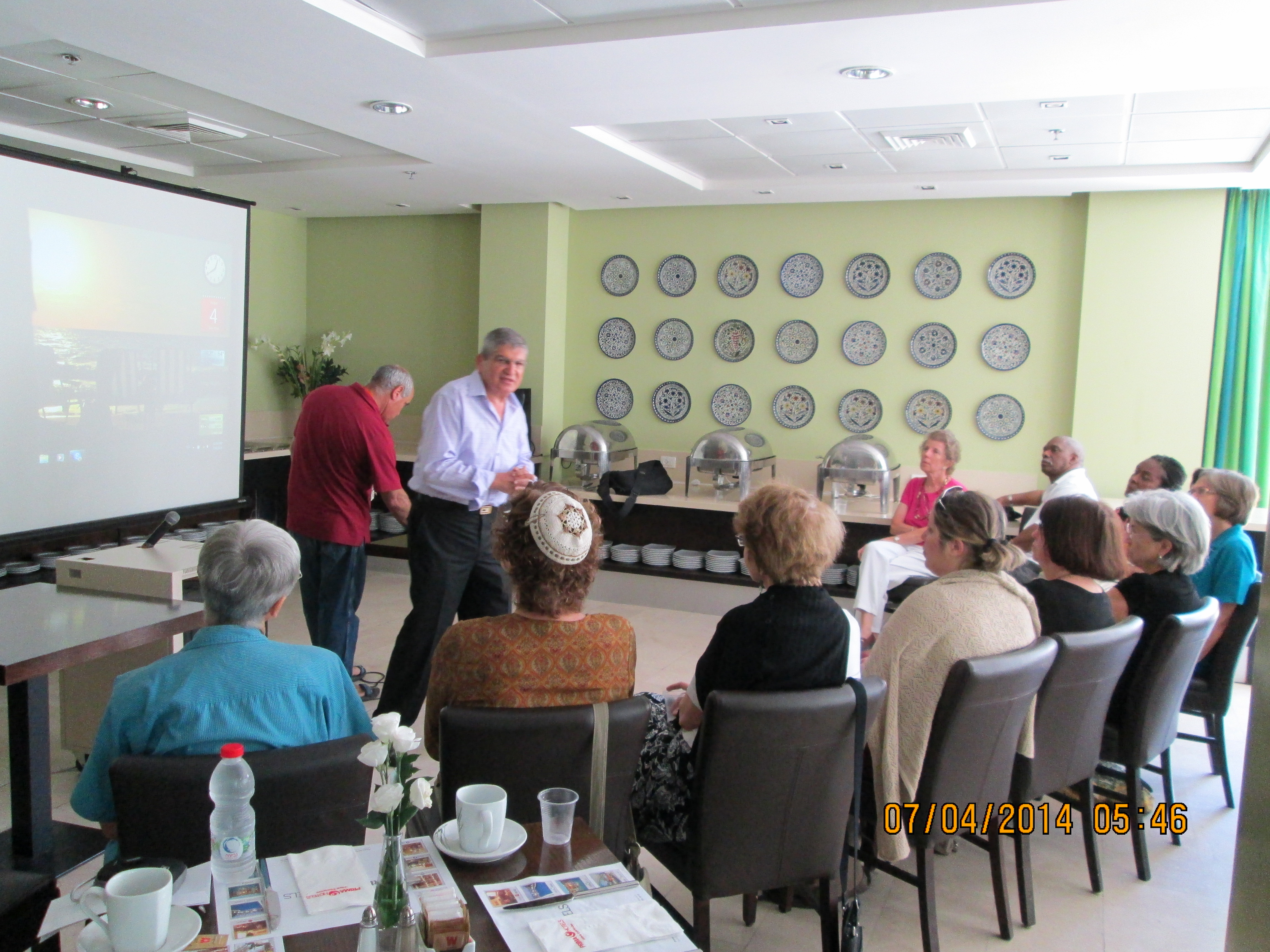 Nice day today! I slept in until 10am! And that sounds rather hedonistic, but I have been sleeping very choppy; and so this worked out to be a great day to do this. Having already been to the Yad Vashem, an incredible Holocaust Memorial, and having a bit of sadness already in me for the murdered children recently here in Israel, I opted to stay in and relax a bit. Also, we were going there and then coming back here to the hotel for what turned out to be an incredible presentation by Gideon Meir, former Israeli Ambassador to Italy. What an impressive and informative man. He shared with us a wealth of information and slides showing how photos deeply distorted the news as well as absolute misuse of photos and the descriptions. It was very insightful.