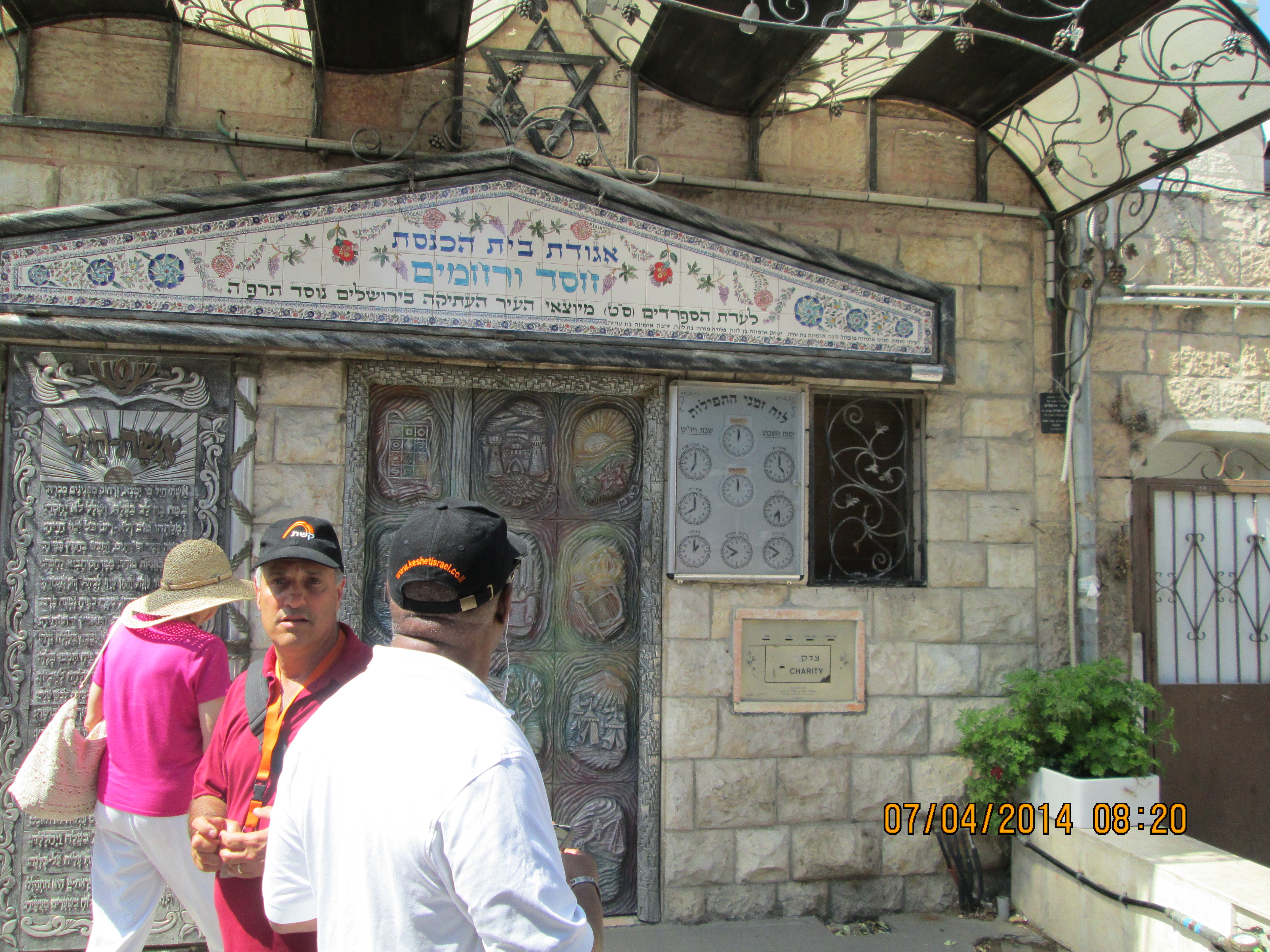We climbed so many steps yesterday, everyone is sort of showing exhaustion. But we boarded the bus 5 minutes after our speaker finished to head to the Market. It’s a must-do experience in my opinion! It’s insane sort of. There is such a mad dash for everyone to finish getting everything they need for Shabbat as well as the vendors needing/wanting to get rid of everything they have so it’s GONE by Shabbat and doesn’t sit around for 2 days! People are everywhere. We were given an hour to shop and eat. I only shopped…figuring I’d have my food in my room afterward! We stopped at an arts and crafts fair on our way there. It was small and uneventful from my perspective. In the Machane Yehuda Market I bought a small scoop of raw cashews and raw peanuts, etc., a fresh bread roll or two, small bits of 2 cheeses, etc. and just had a lovely much in my room afterward. Much better to eat in my A/C room than standing up outside in the scorching heat!! To do so, I didn’t join a few of the group walking to an Armenian Jewish service. We will have another big walking day tomorrow, and several of us just took a break instead so it’s allowing me to get all caught up in the blog. And, more importantly, it’s allowing me some time to take in everything we’ve been seeing, hearing and doing.