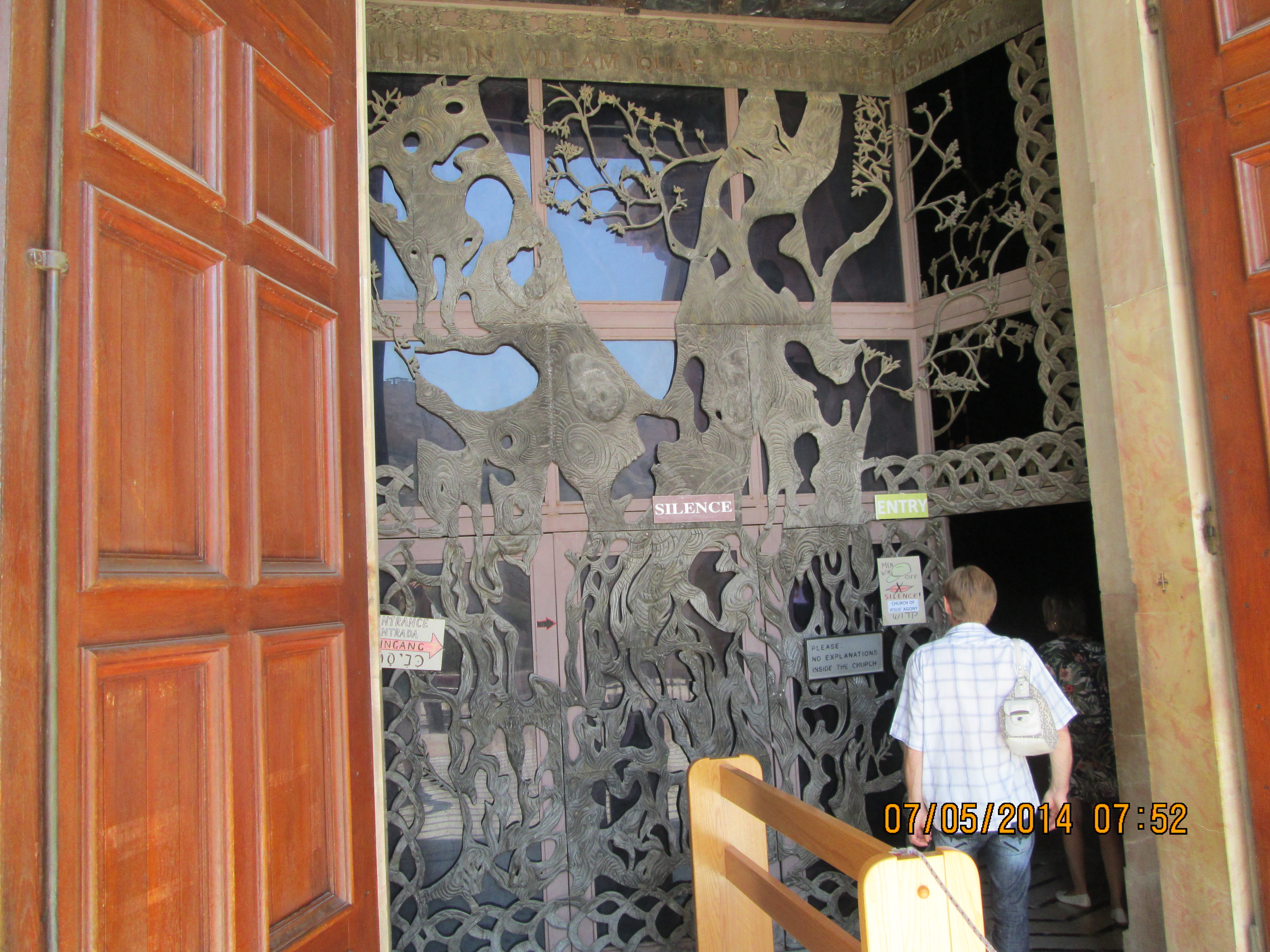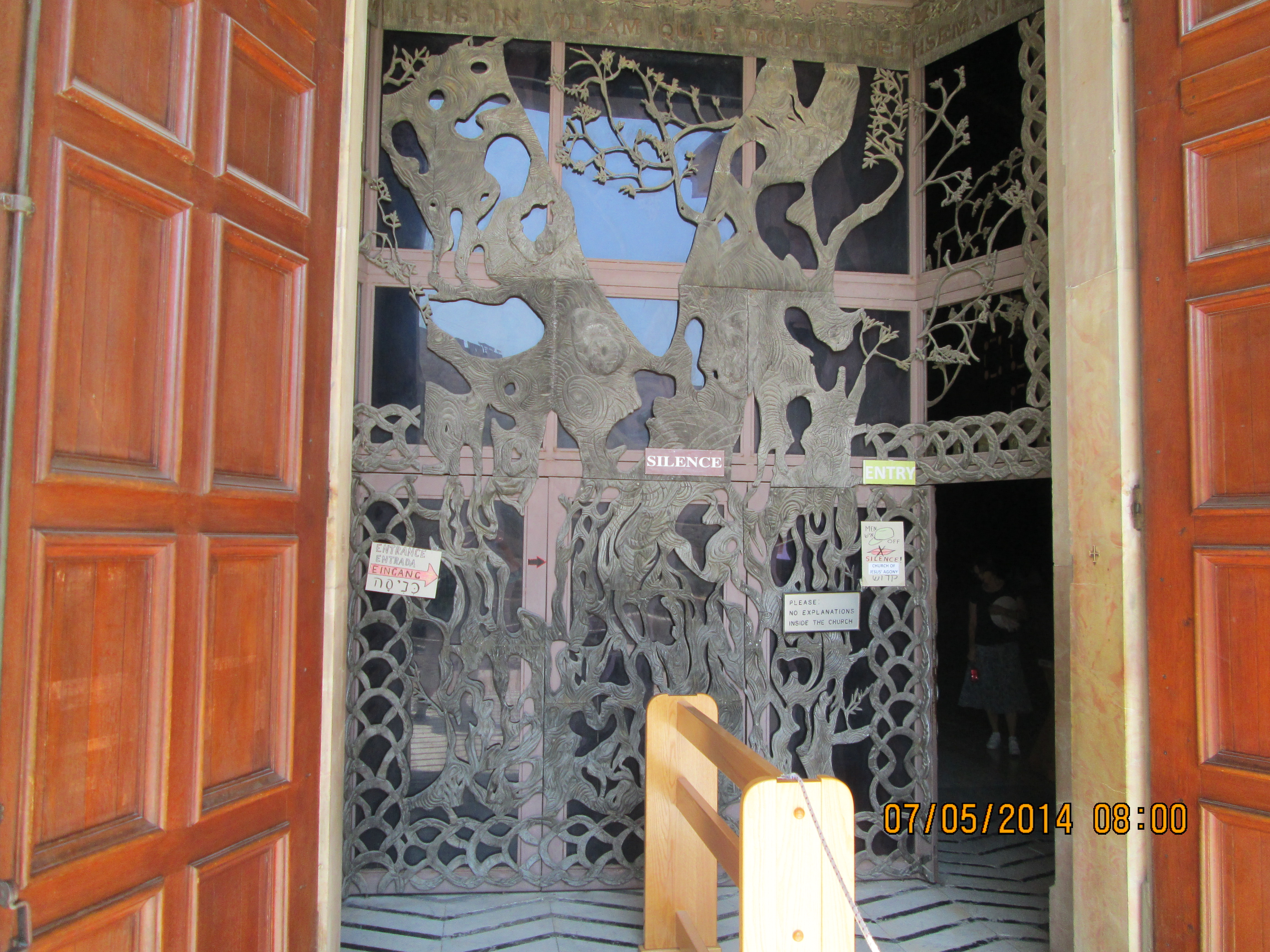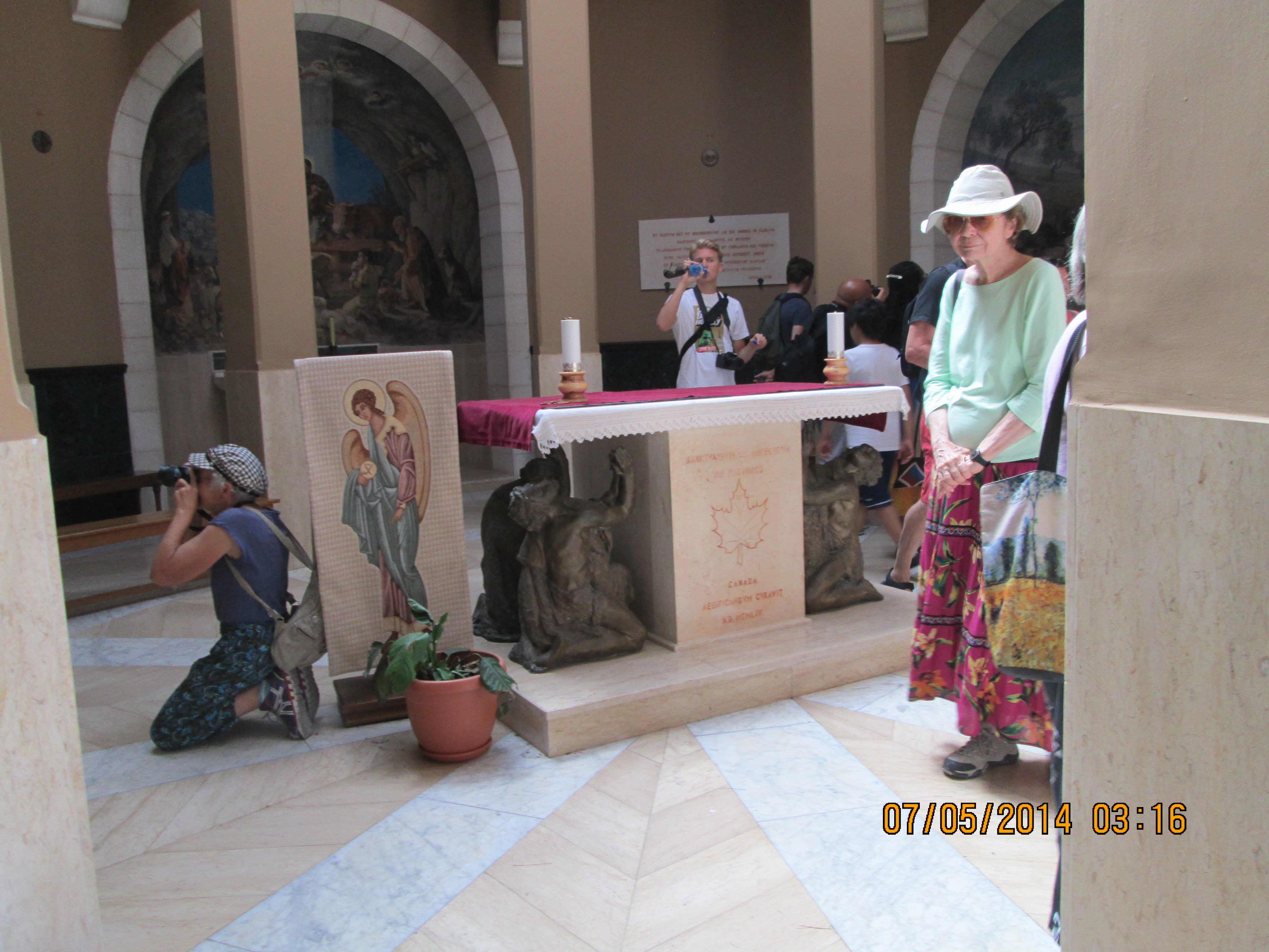 Just outside, and through the gardens–these gardens are said to be where Jesus went often to pray which is why he was so easy to find when Judas went to get him — is the Tomb of the Virgin Mary. and just off of that is the Grotto of Gethsemane which I think we spent more time in than Amos expected. Here is an internet description of it: