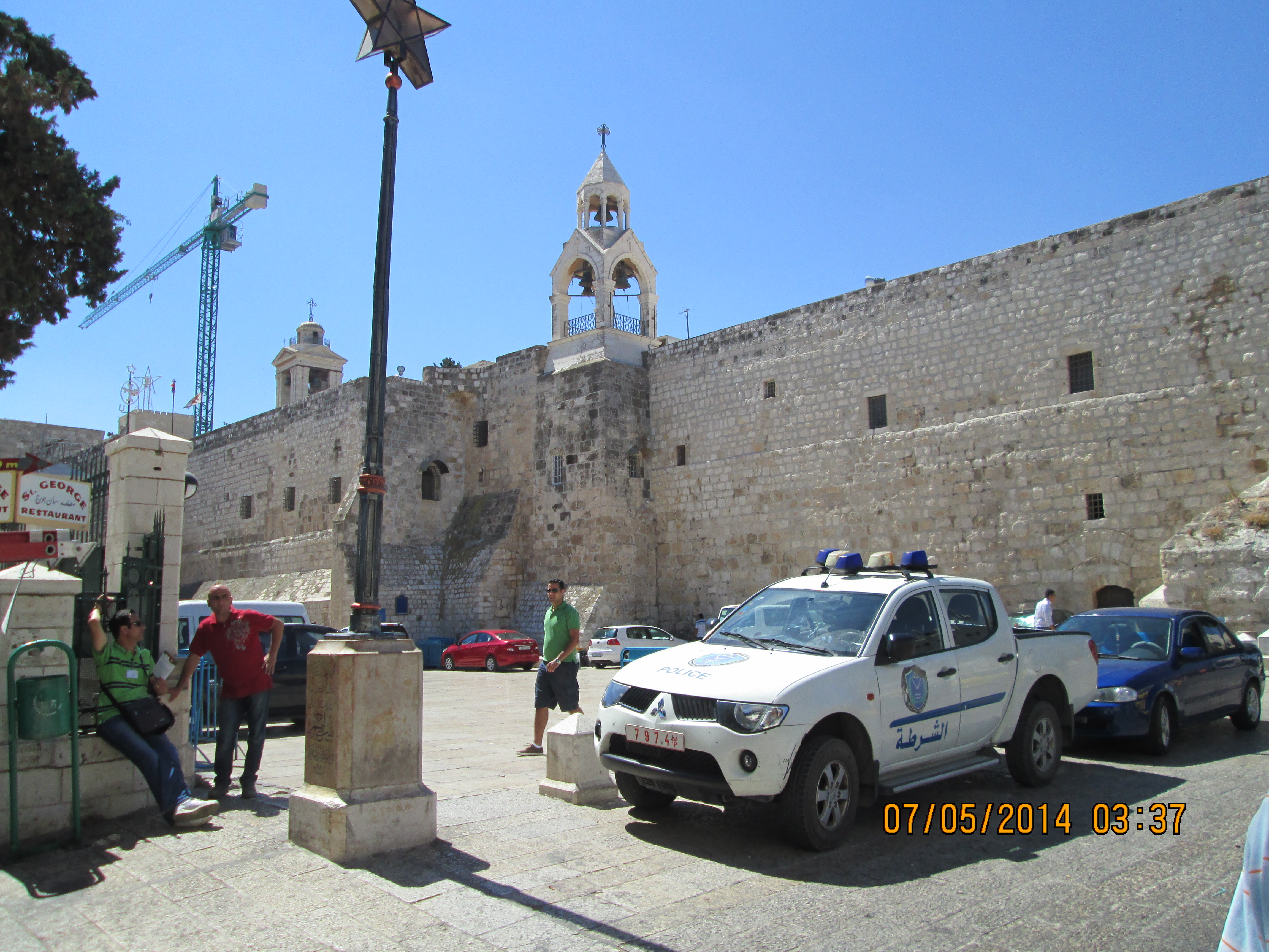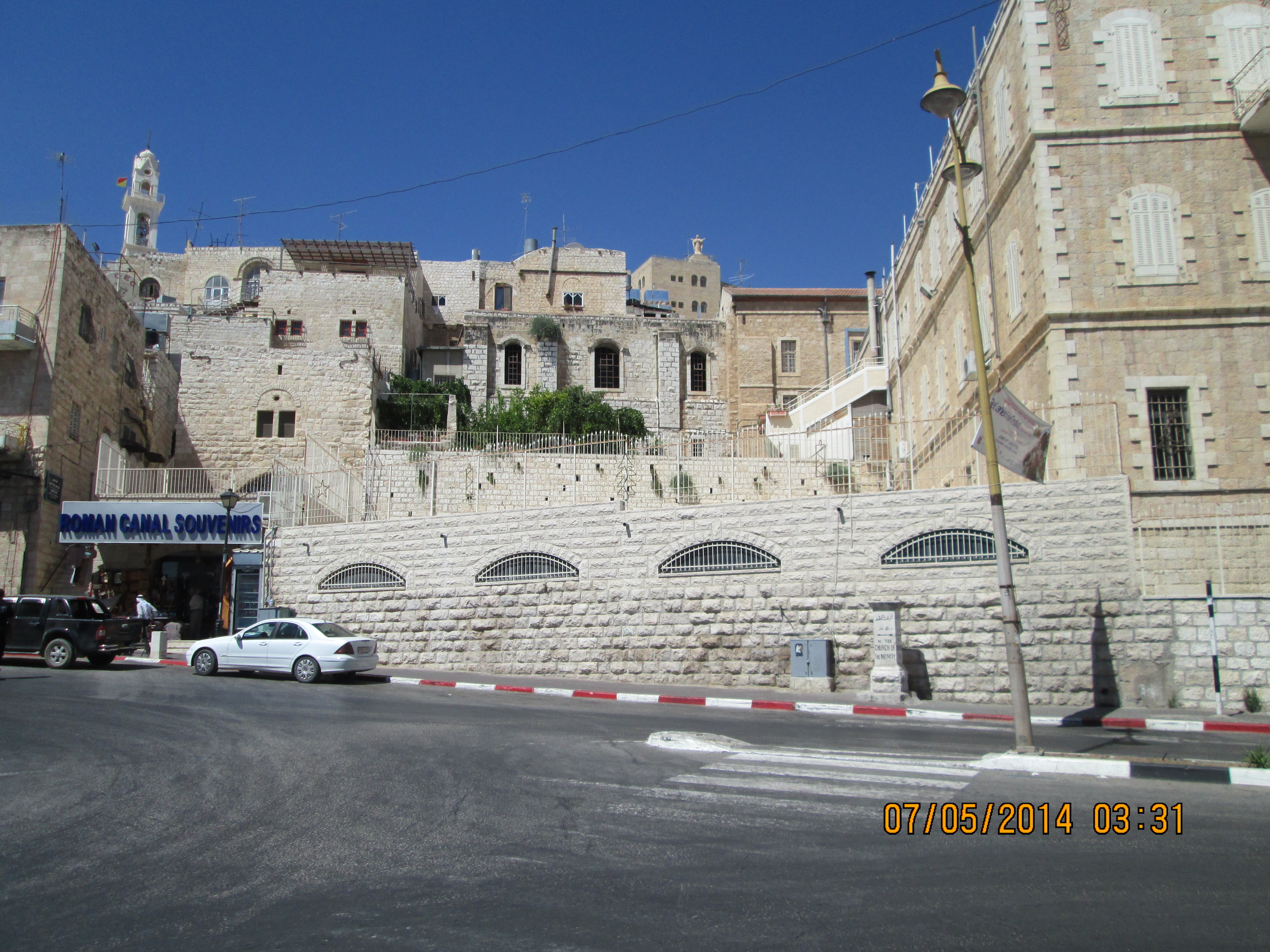 We left Bet Sahour and took a short drive to Bethlehem to a “car park” garage and then walked to the Church of the Nativity. I’m very glad we went to Bet Sahour first. The walk form the garage to the Church was rife with tourish trappings and I did end up taking pictures of some of our walking to/from the Church just to get you to see the way the church is tucked inside of very residential and commercial space.