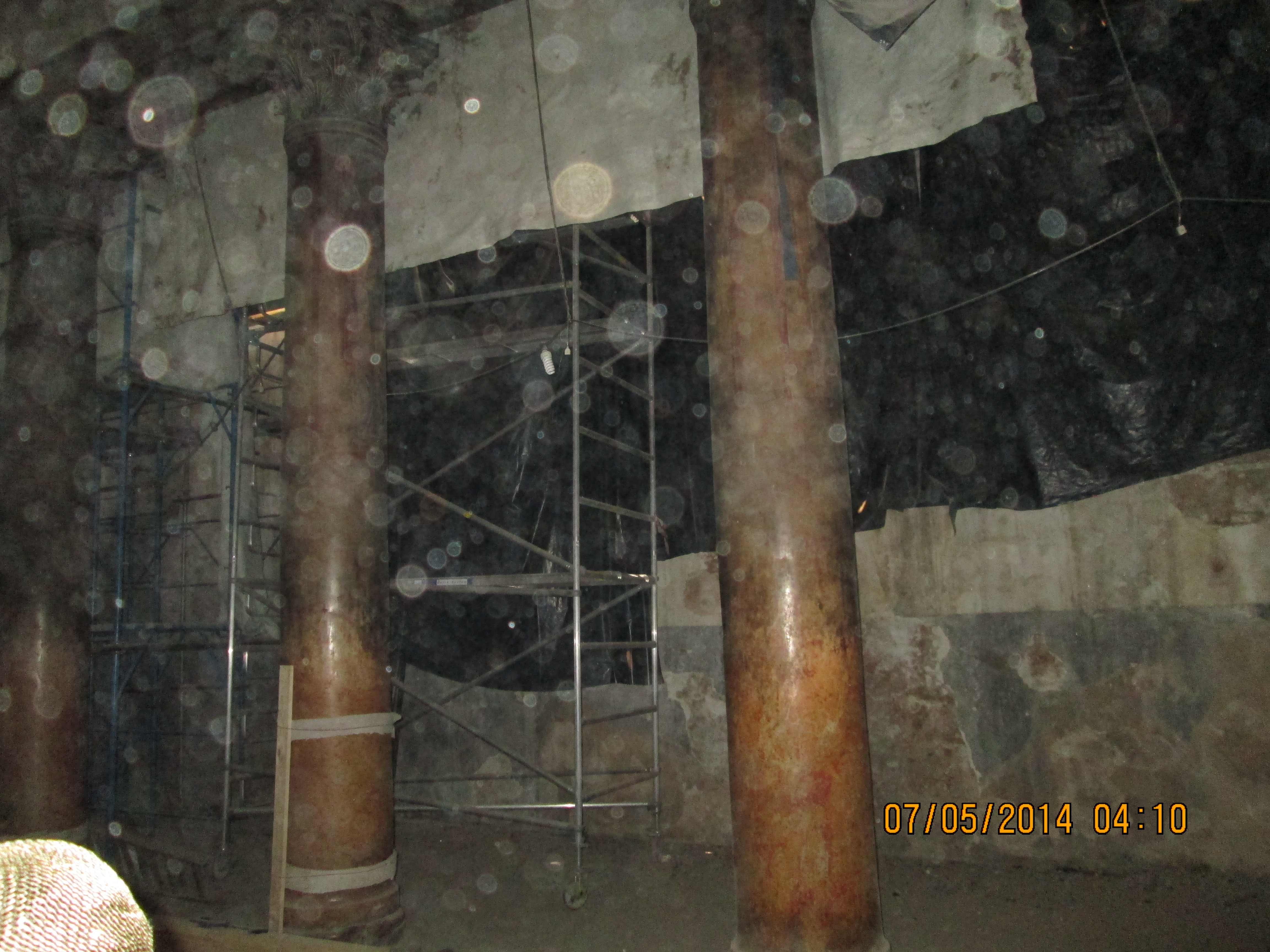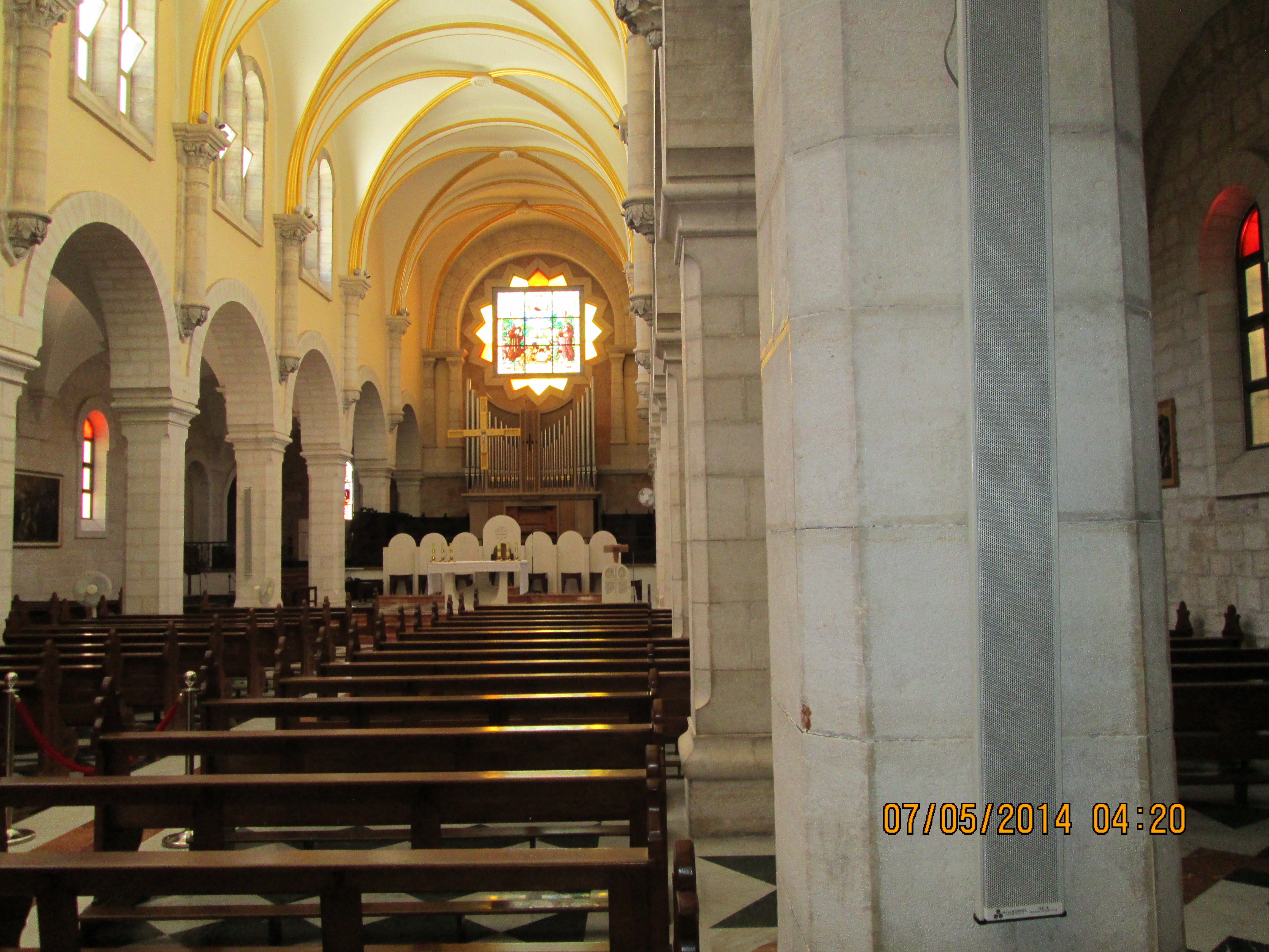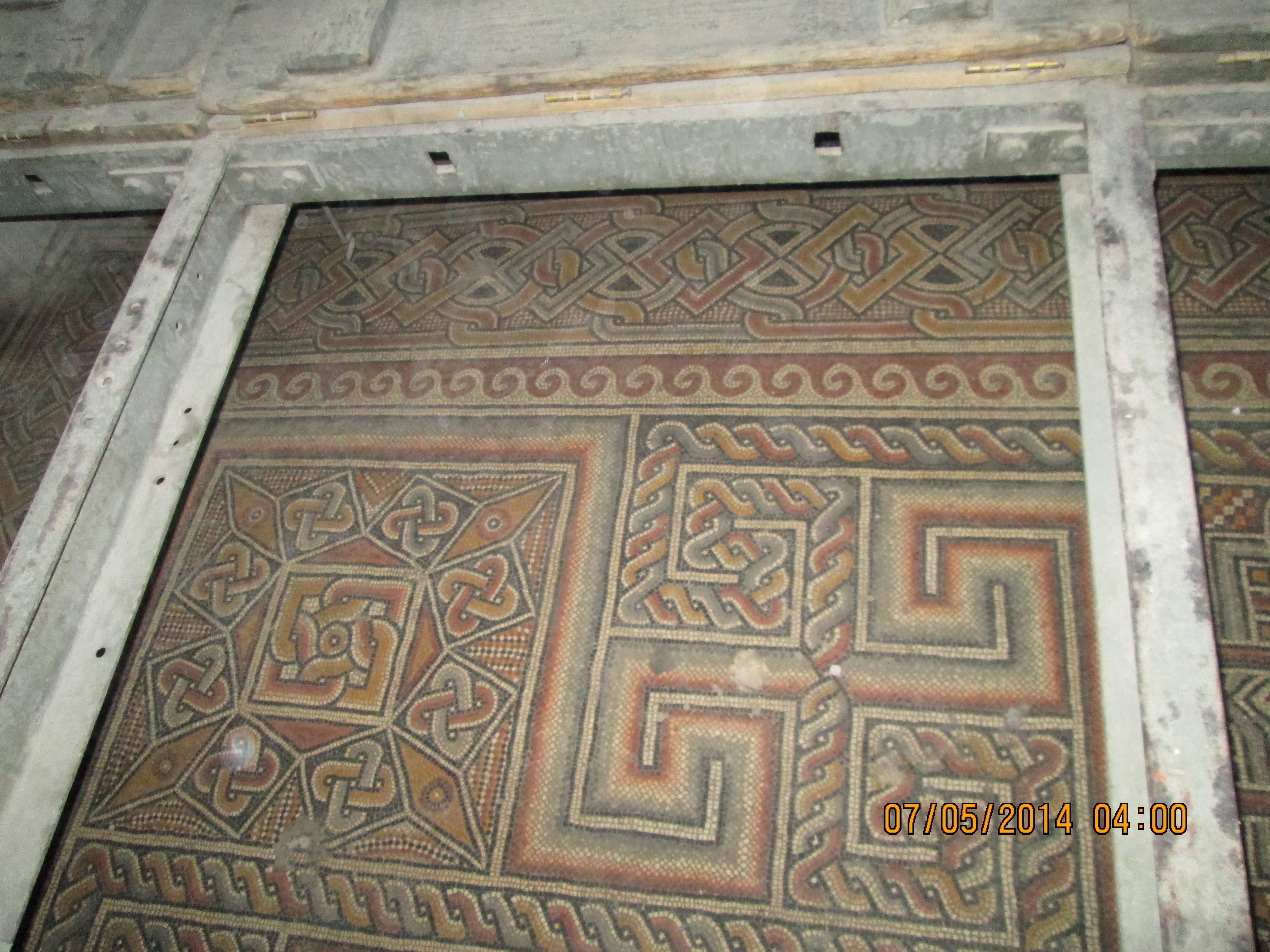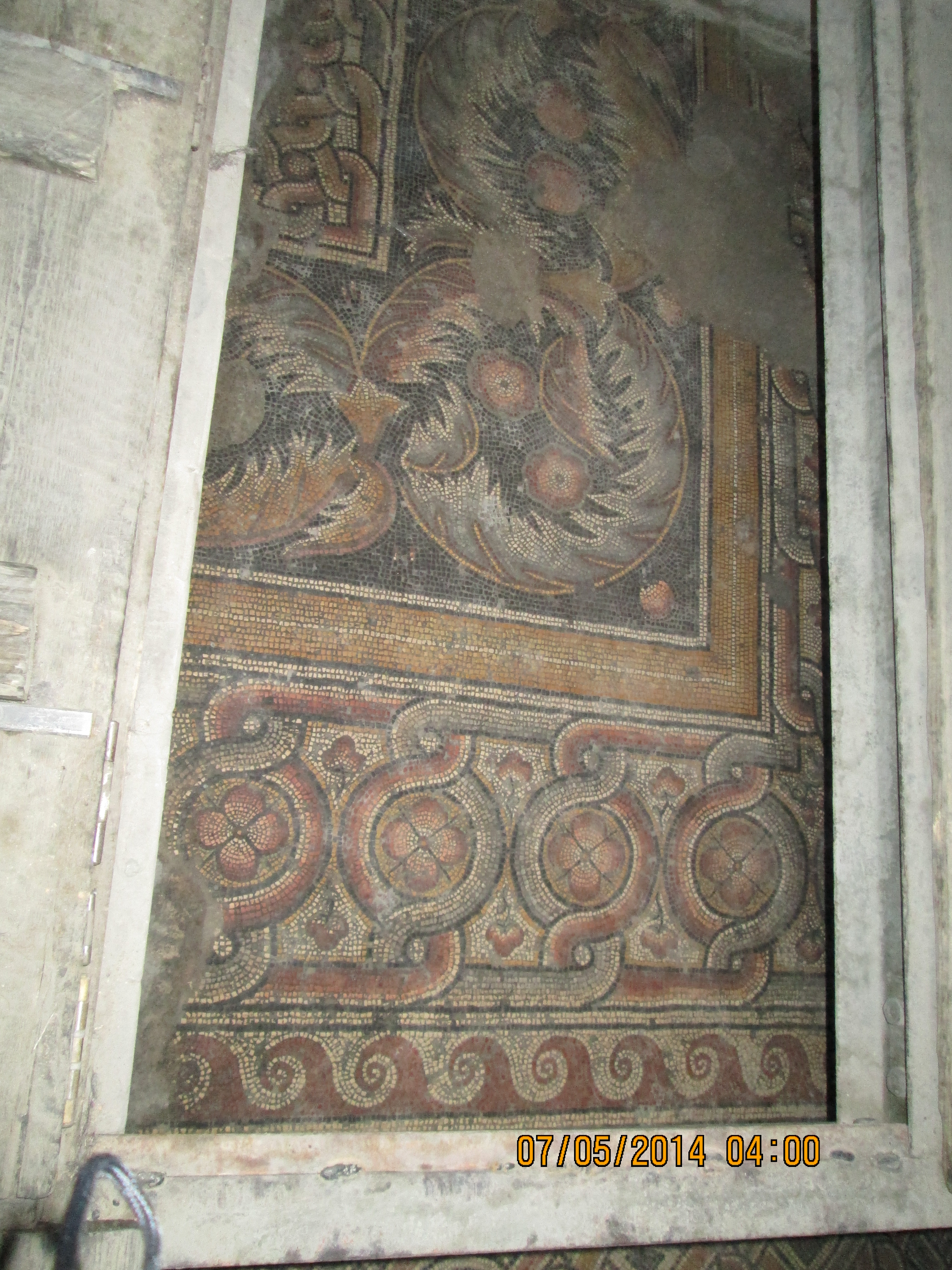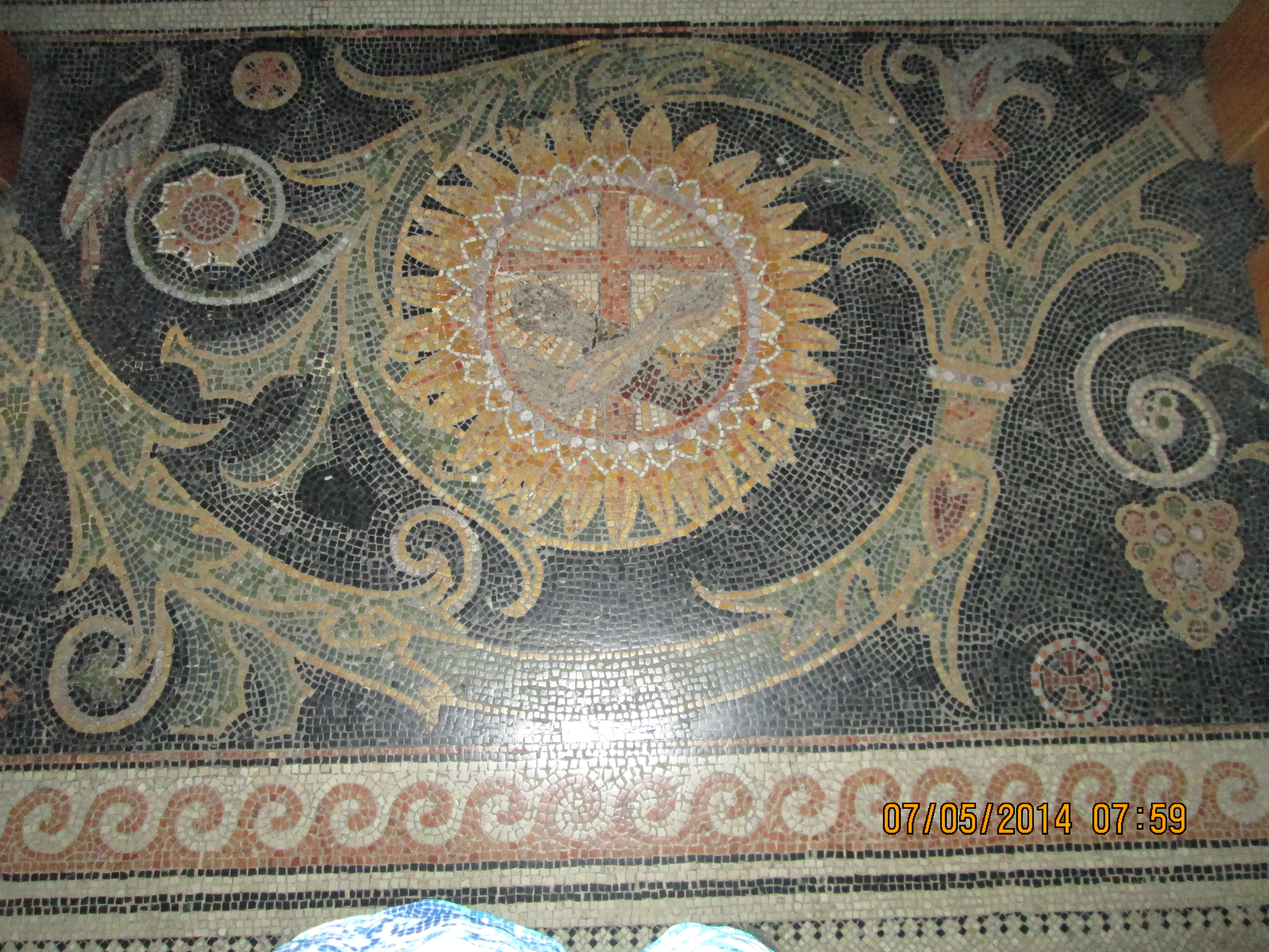 Artistically speaking, what I enjoyed most were floor mosiacs which many years earlier had been completely covered up as they built atop them; they have many “lift up doors” installed into the floor and they flip them open for viewing. They were really cool. Upward looking shots of the solid wood beam ceilings left uninterrupted along one side show what they hope to restore the other side of the church to.