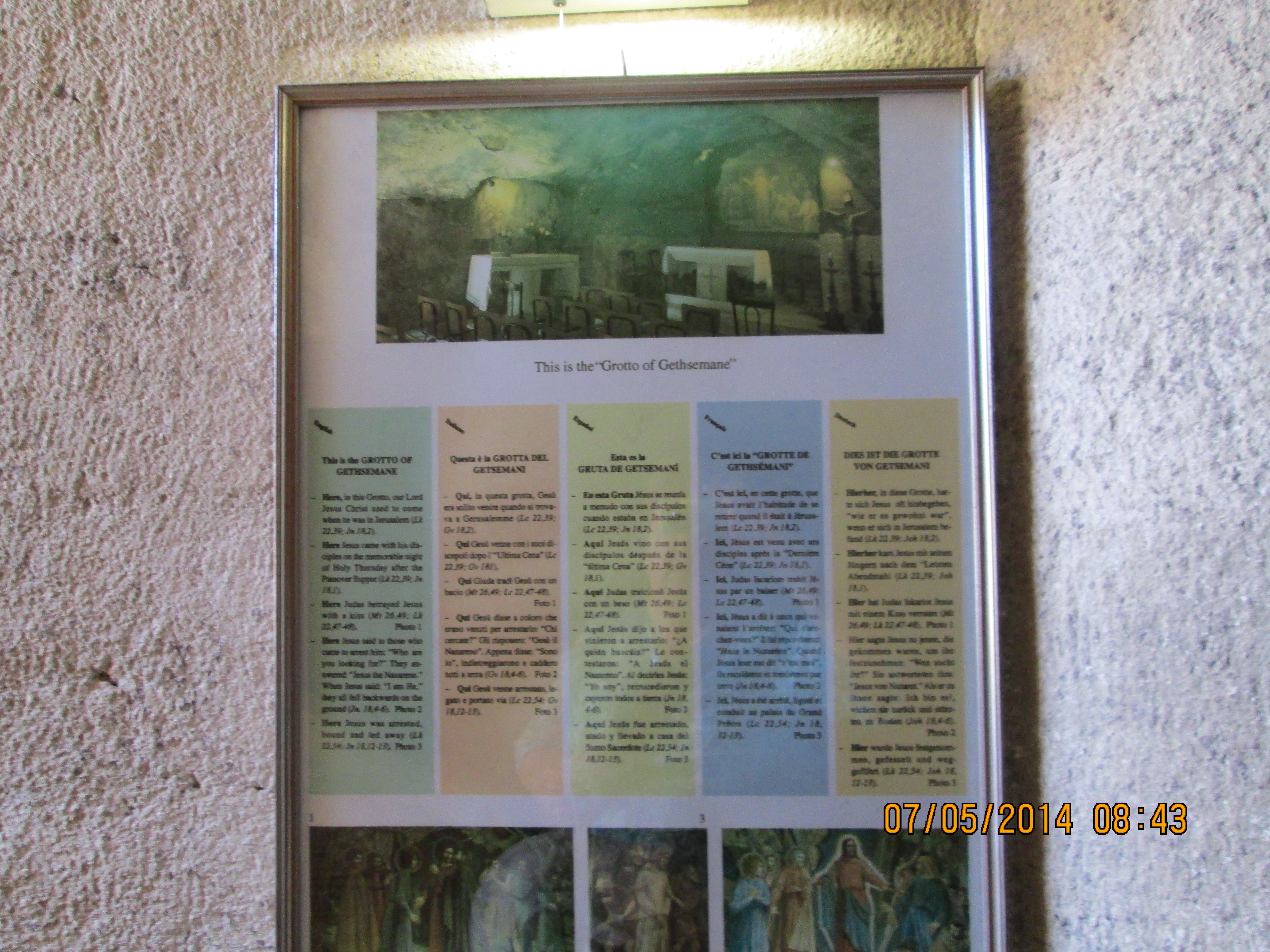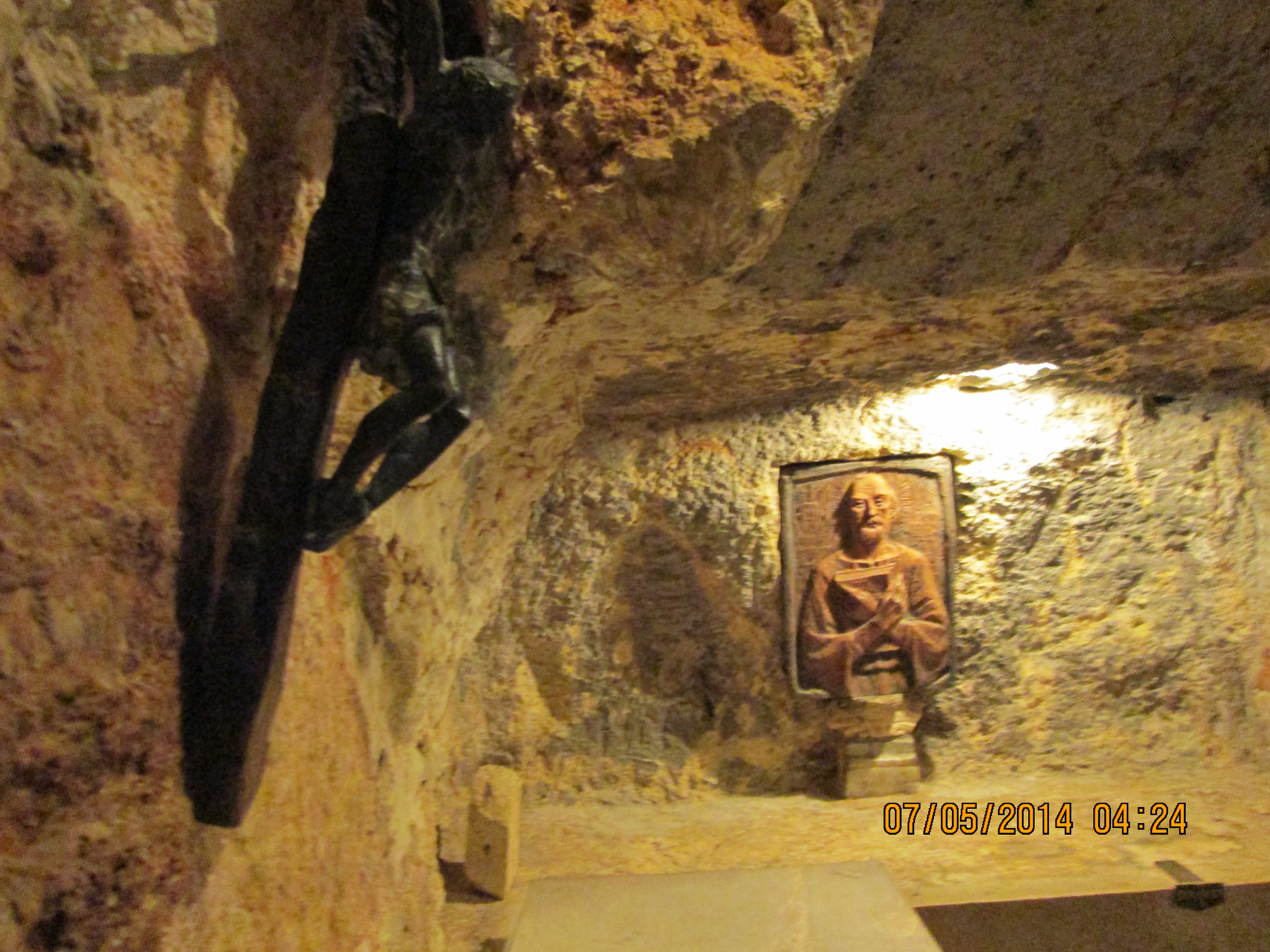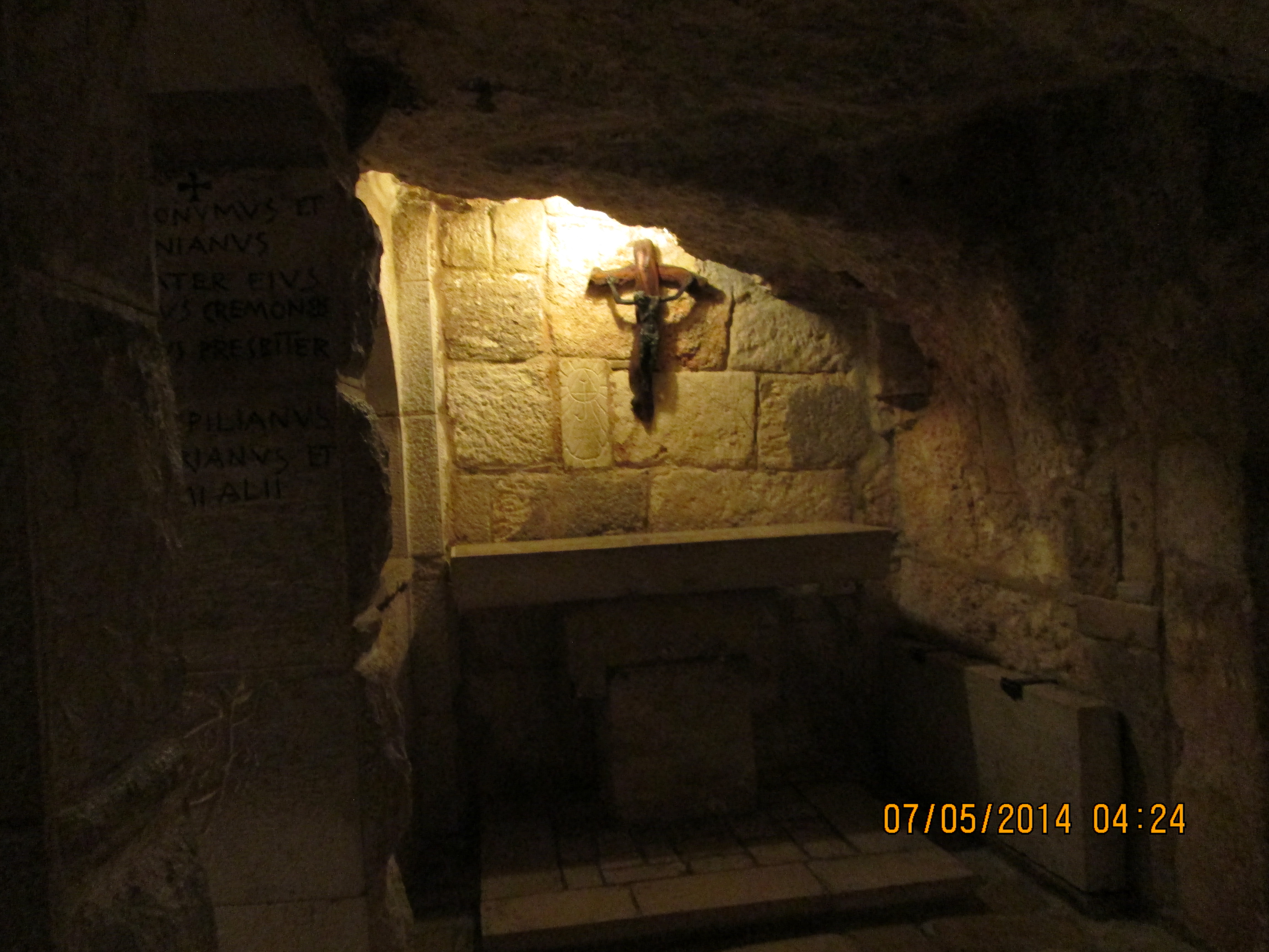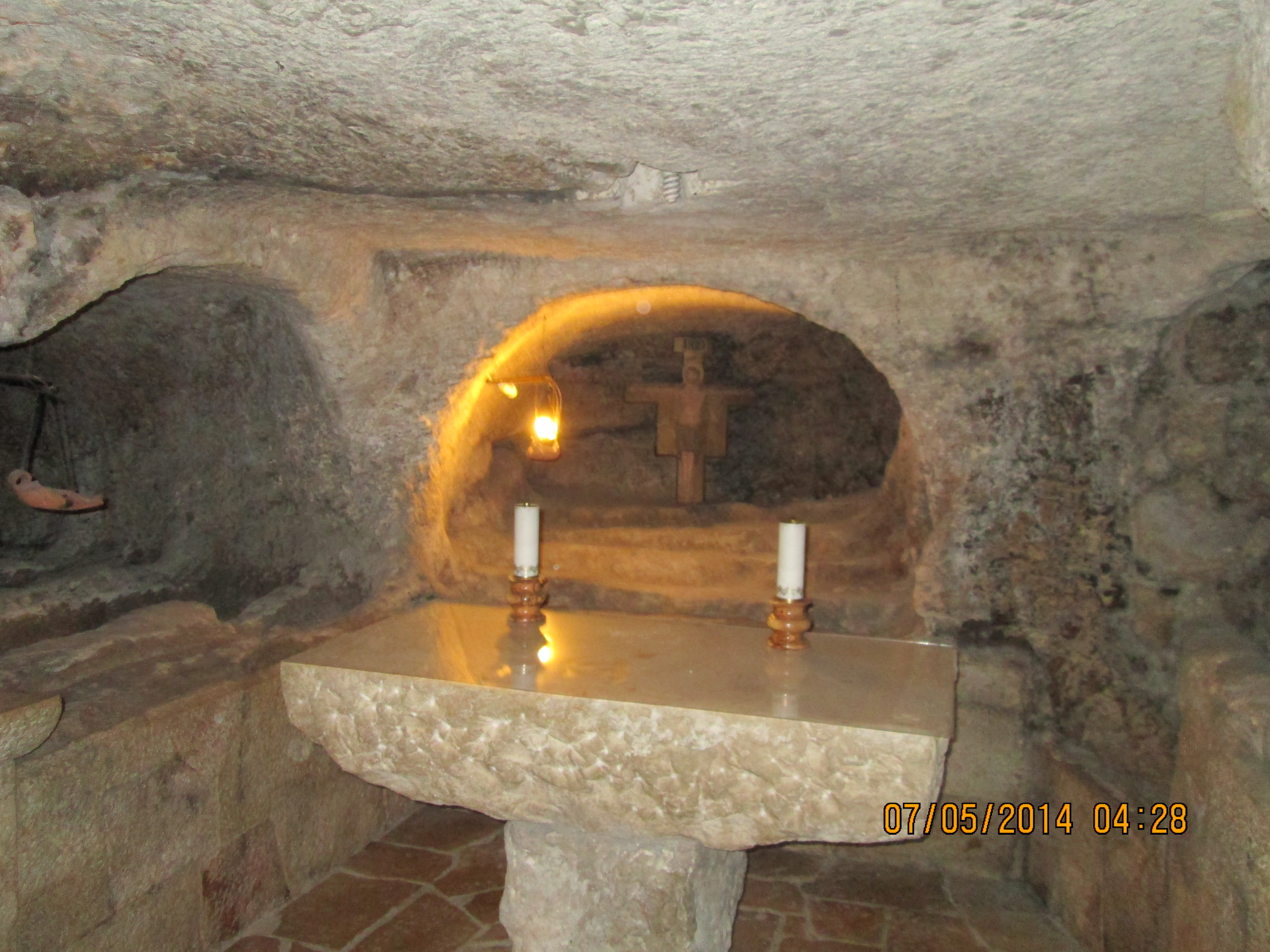 The cave, measuring approximately 19 x 10meters and 3.5 meters high, has continued to maintain a “natural” appearance despite the various transformations it has undergone. Initially it would have been used for agricultural purposes, with cisterns and drainage ditches for water and perhaps an olive press; beginning in the fourth century it became a rock church used for funerary purposes; in the Crusader period the vault of the cave was decorated with paintings of stars and scenes from the Gospels. http://www.gethsemane-en.custodia.org/default.asp?id=5652