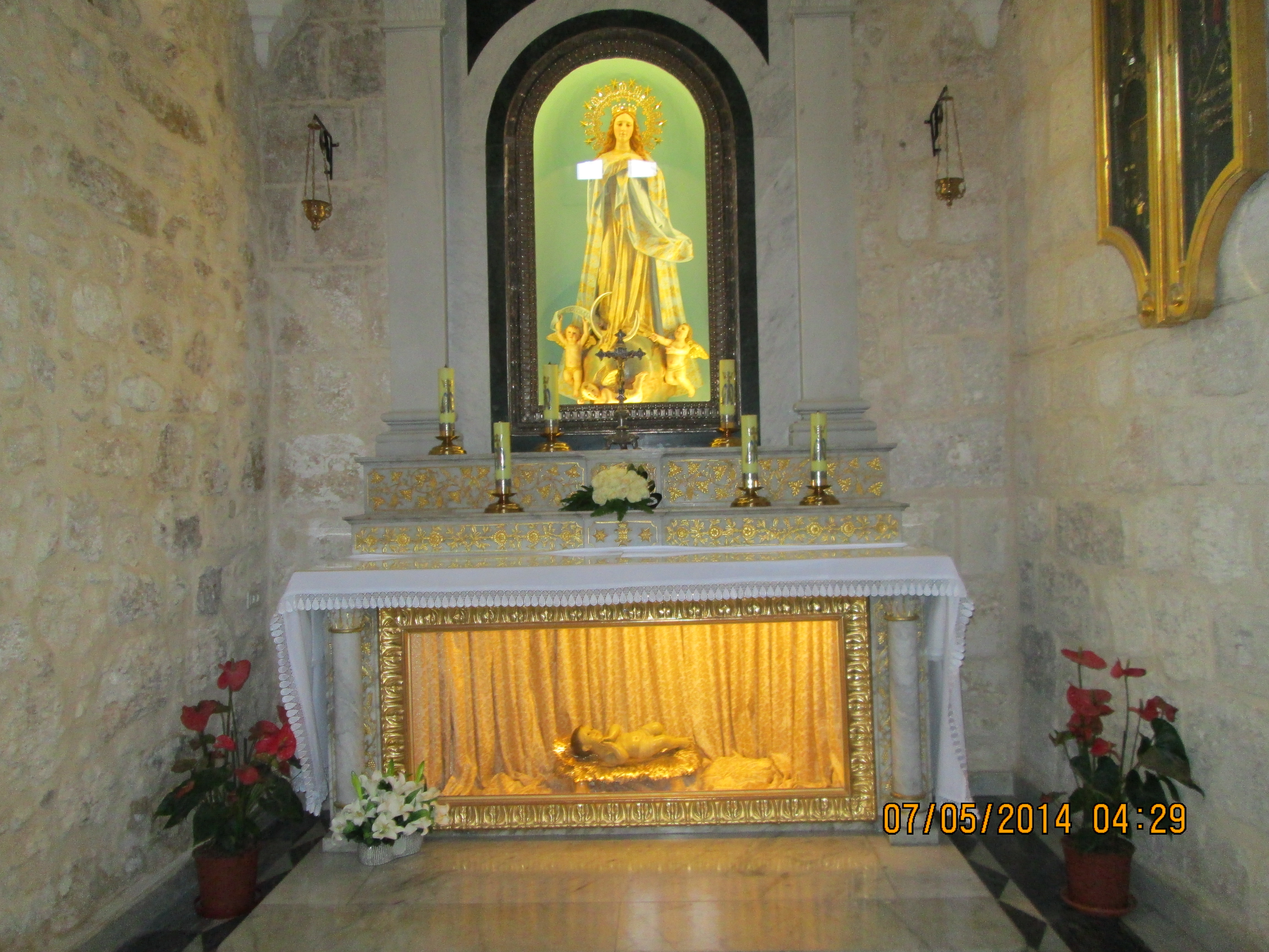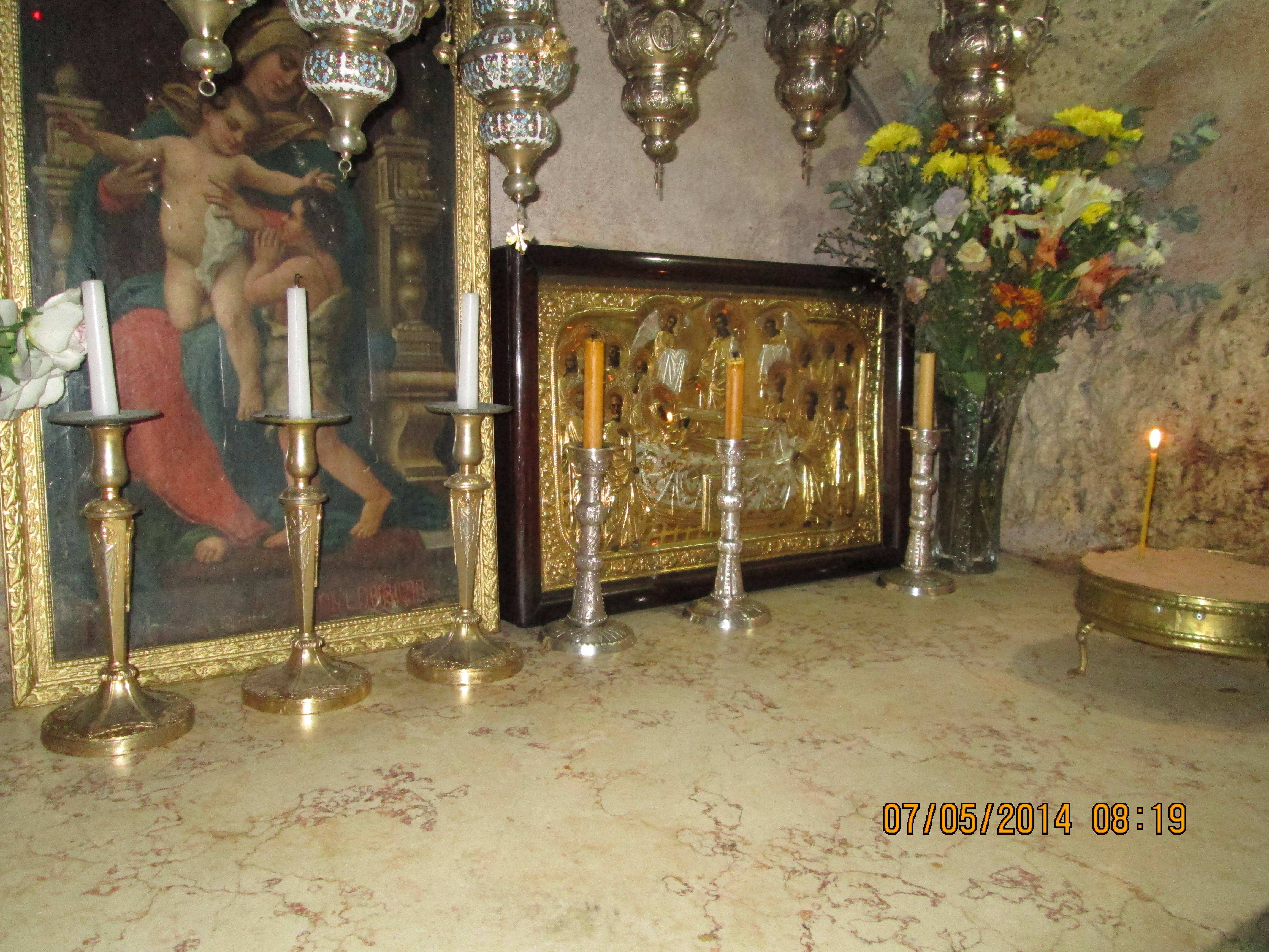Bethleham, Church of the Nativity: I lit these 2 candles for Donna and Me; I always light us candles whenever I get to a church or cathedral…and by the Mary shrine (from one Jewish Mother to another