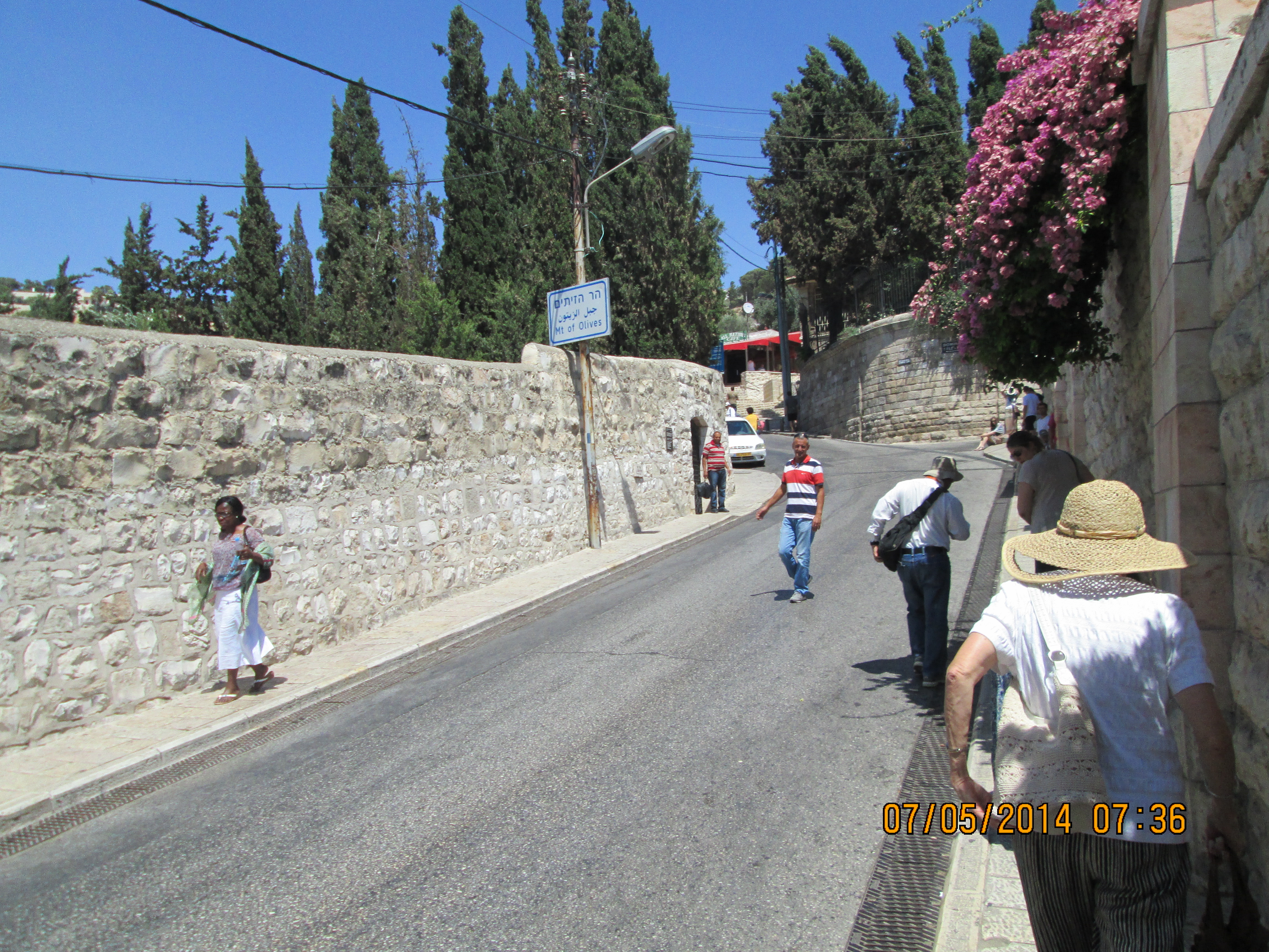 We went back to the hotel, some of us by cab, some by walk. It had cooled down nicely and so those who walked really enjoyed it (I went in the cab!–not knowing what the next day would hold for my knees I decided to give them whatever break I could)! When I went to pay the cab driver, he refused to accept one of my 50 Shekkel bills. I had purchased 1200 shekkels (about $300) from the bank machine just outside of Machane Yehuda Market a day and a half before, and was apparently given a fake bill! My tourist loss for the trip.