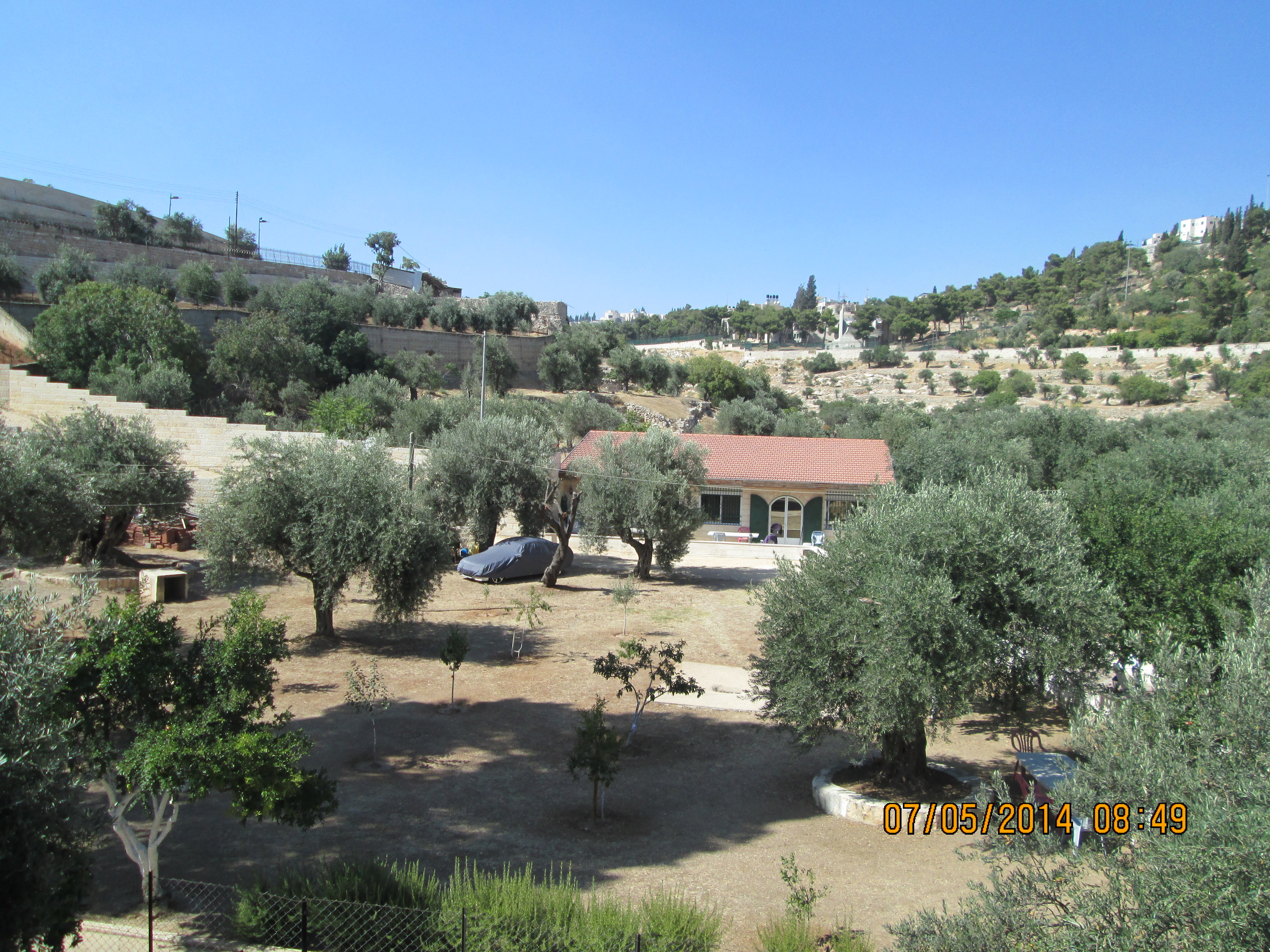 as we’re starting our long walk UP through East Jerusalem to go to Church of Holy Sepulchre, I saw this car sitting in the middle of the garden