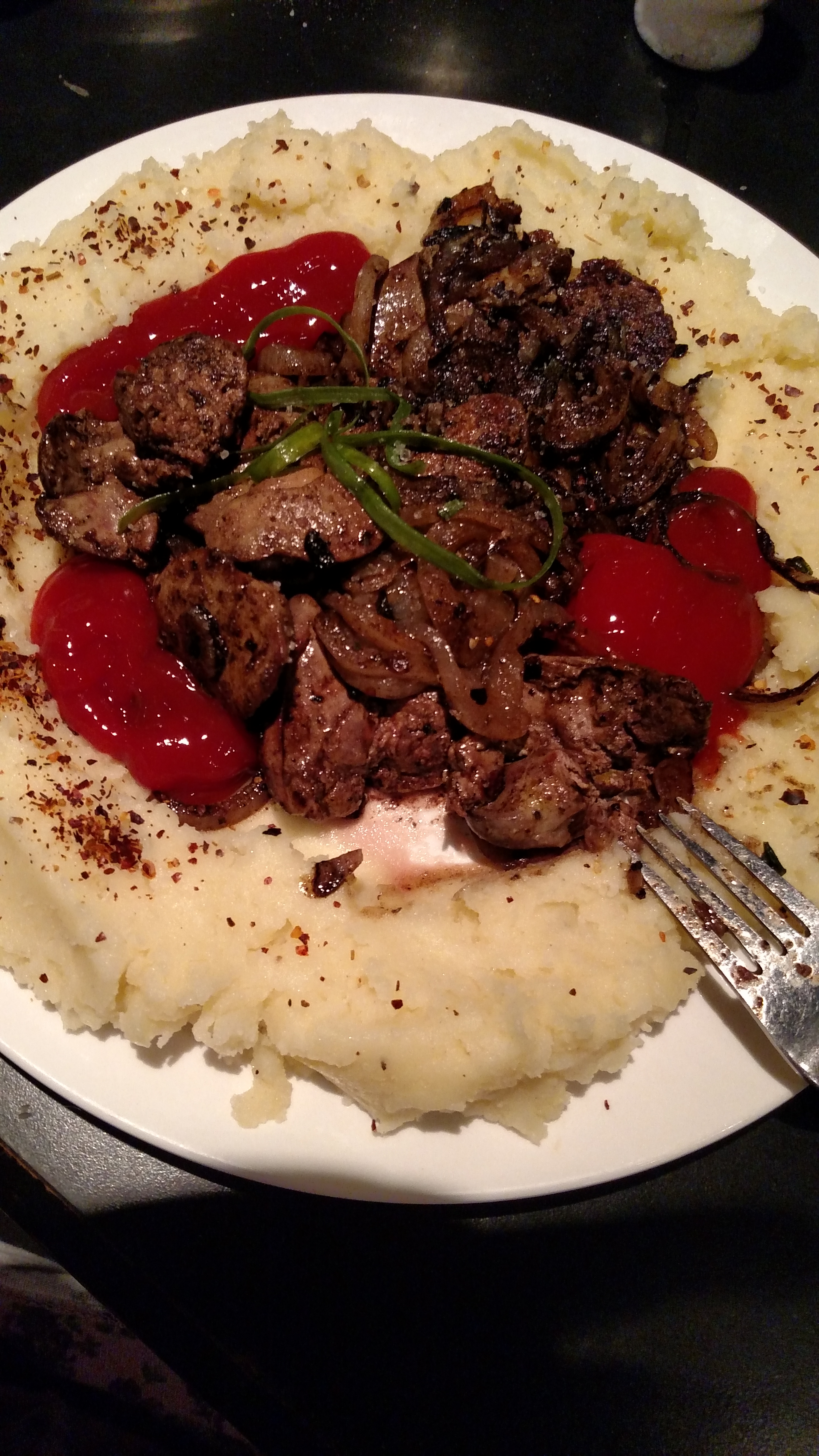 My chicken livers and onions in a ring of mashed potatoes! It was delicious.
