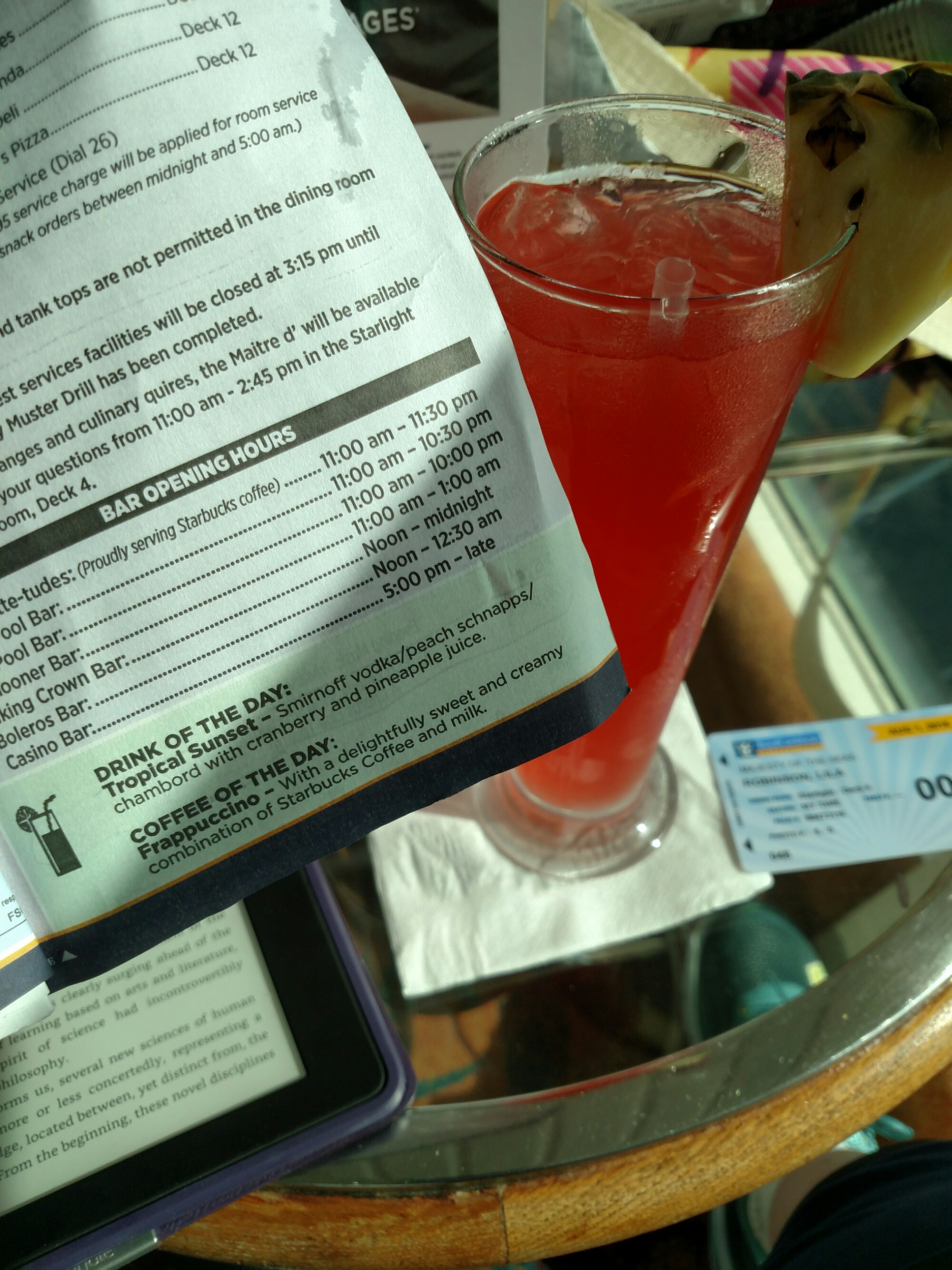 Had to try the Drink of the Day after I got to the meeting place for the ship tour too late. Irony…I got lost on my way to learn my way around the ship!!!