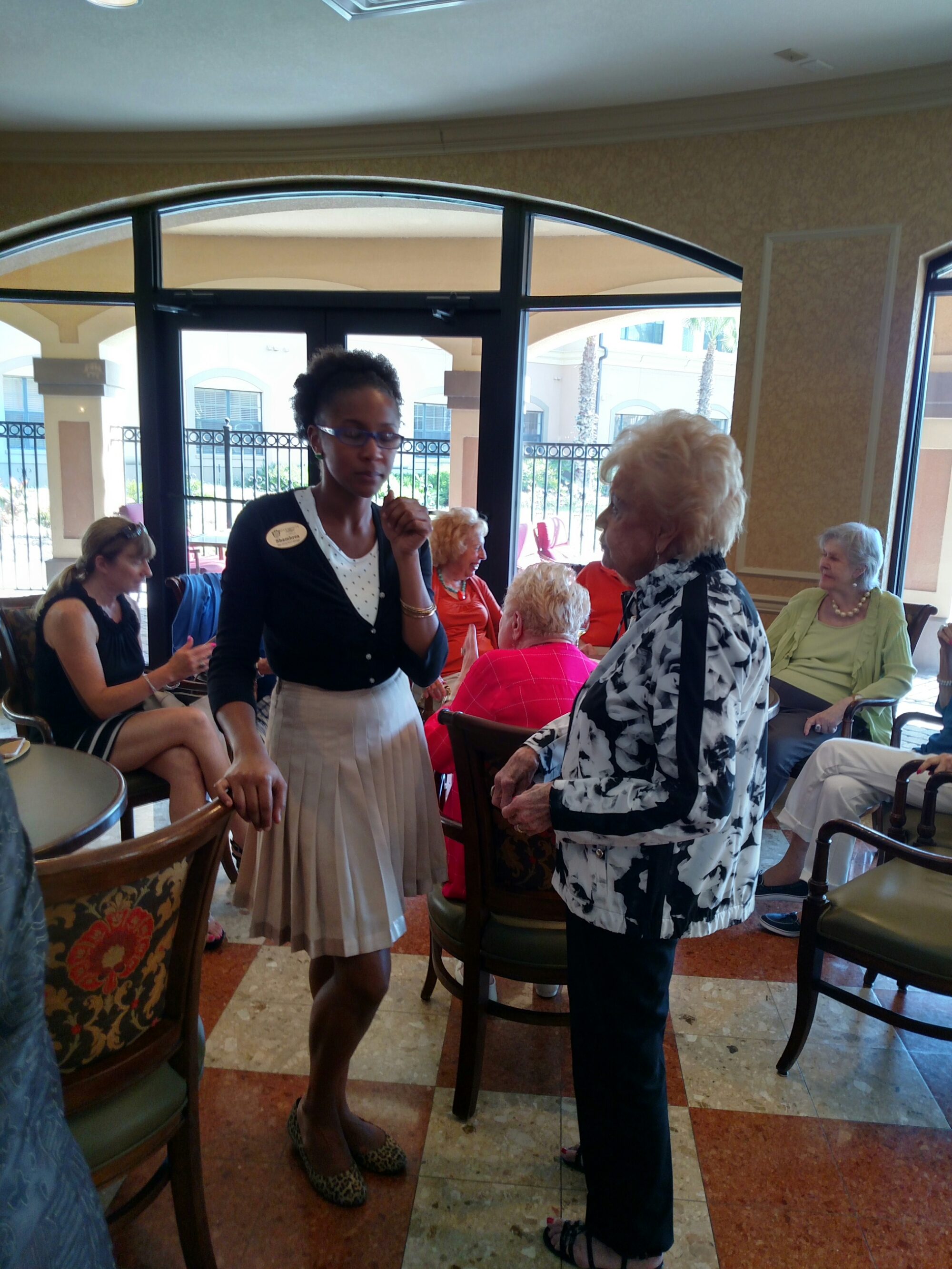 Happy hour just prior to dinner with a pianist and private bartender! Aunt Bobbie getting us our drinks!!
