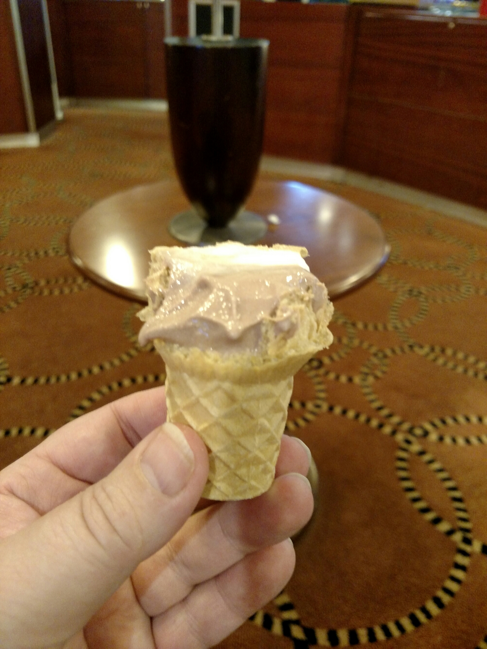 8/3/2016 Wouldn’t be right to pass up the ice cream machine right???!!! Only a teenie cone but quite perfect. In the background is a table lamp not a drink. I am reading my textbook for school after all. I did not get off the boat at Nassau today. There were 4 other ships in port and I’ve been there a number of times so I figured I’d avoid the crowds … it was a good idea! …hmmm in proofreading I may have said his earlier oops!